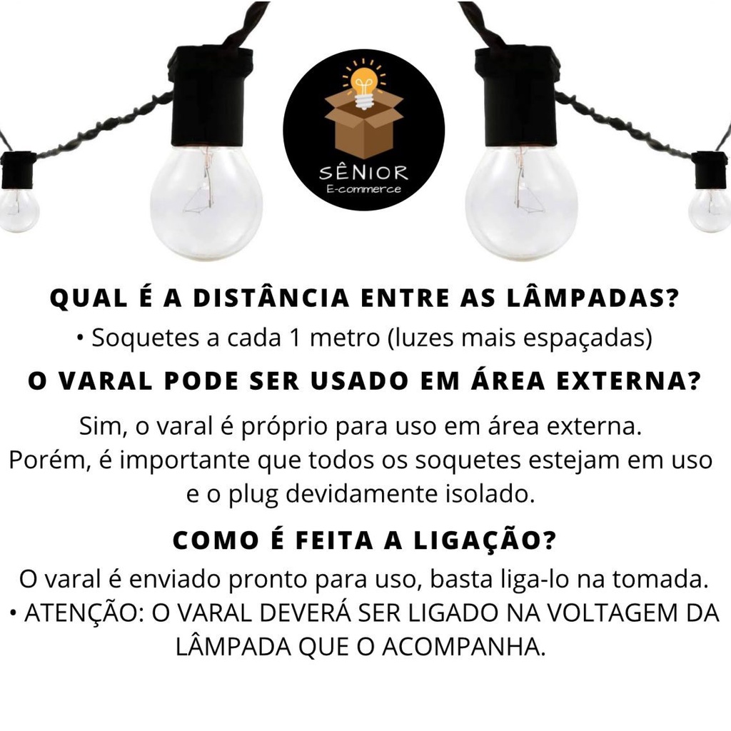 varal de Luz para área externa com 15 metros, Festão, Gambiarra, com lampadas inclusas