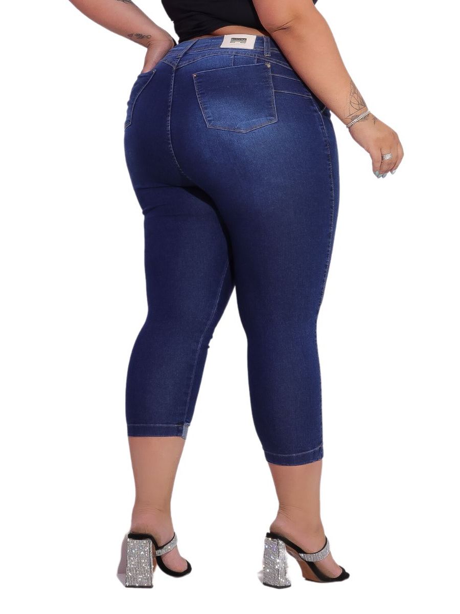 Calça Capri Barra Virada Jeans Plus Size Feminino Com Pinça