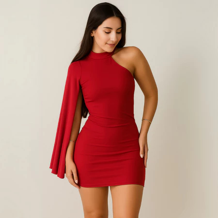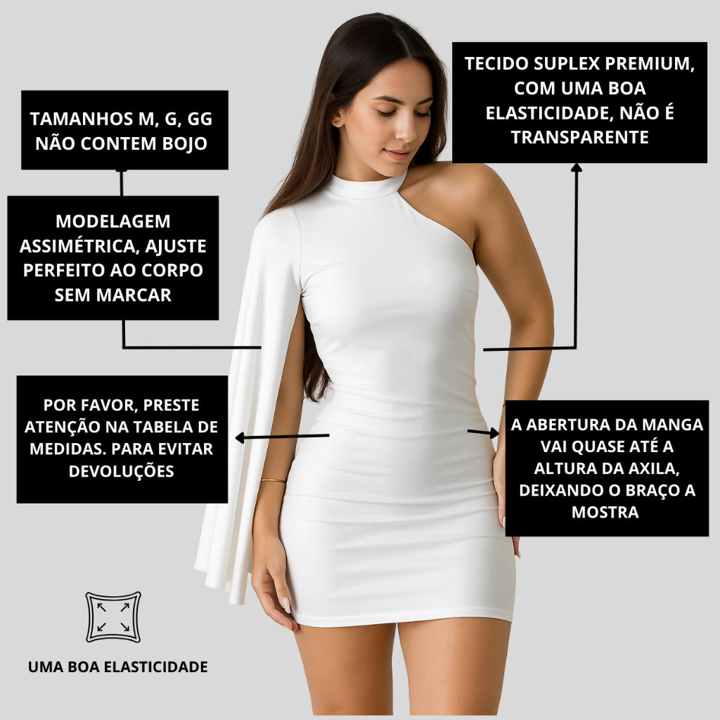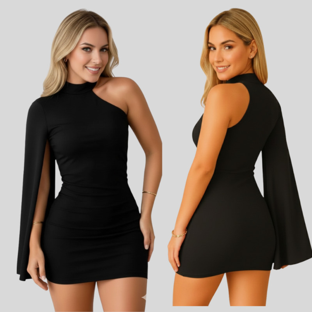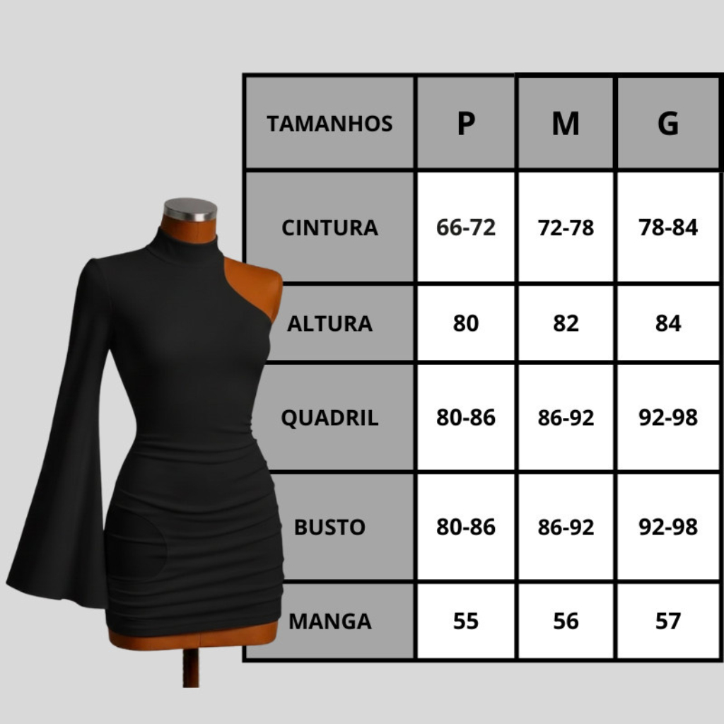 Vestido Curto Estilo Gringa Manga Mula Lateral Com Gola Alta