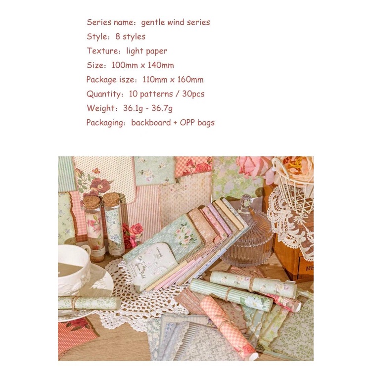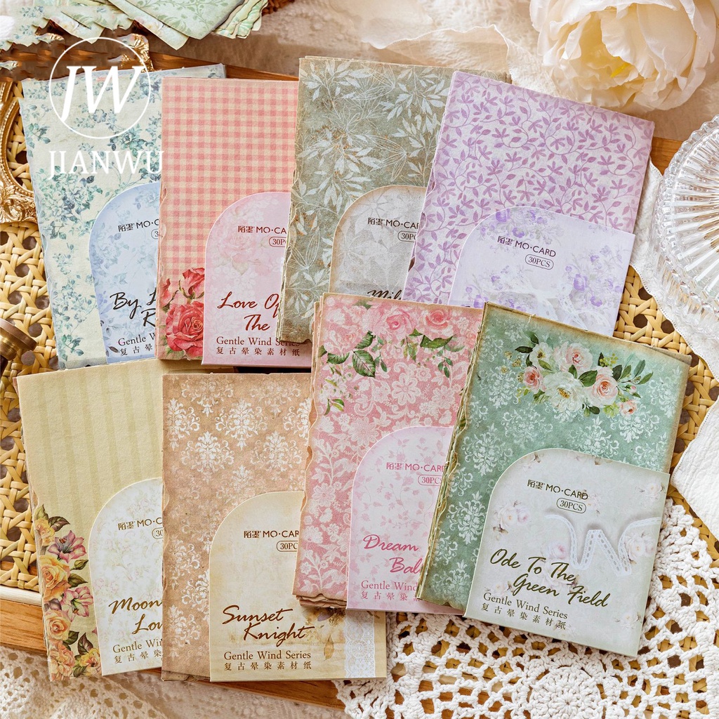 JIANWU 30 Folhas Gentle Wind Series Vintage Flower Pattern Decor Material De Decoração Papel De Colagem Criativa De Diário De Bricolagem Papelaria
