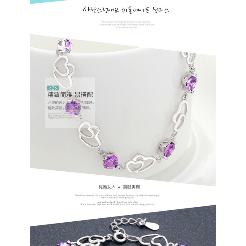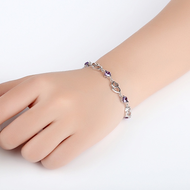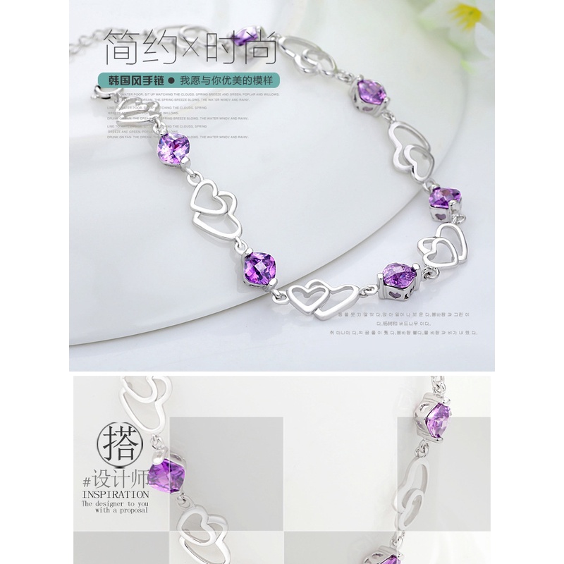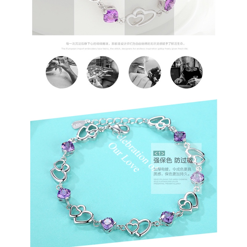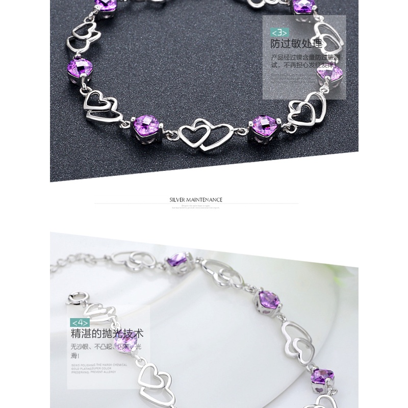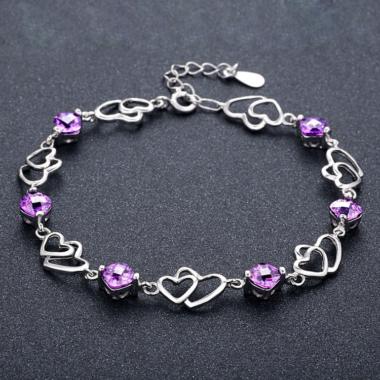 ♥Pulseira De Prata Dupla Coração Ametista 925 Artesanato pulseira masculina homens Acessórios de moda coreanos casal Pulseira feminina vintage 925 pulseiras e braceletes prata para mulheres