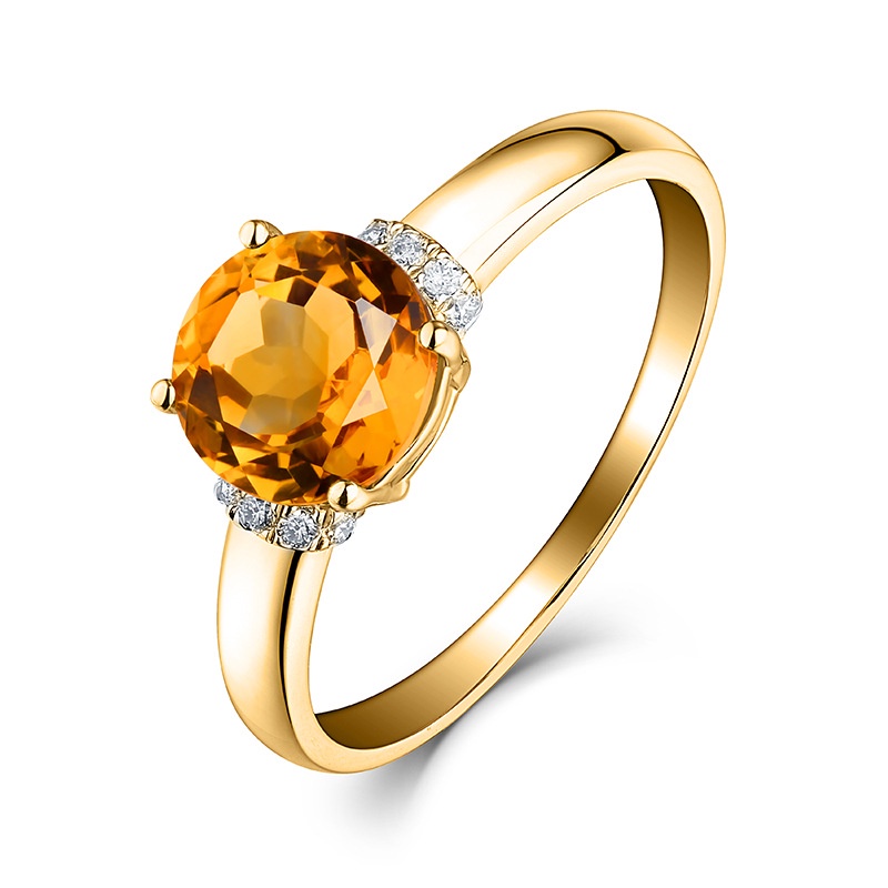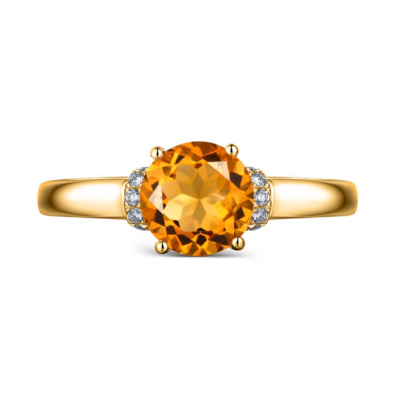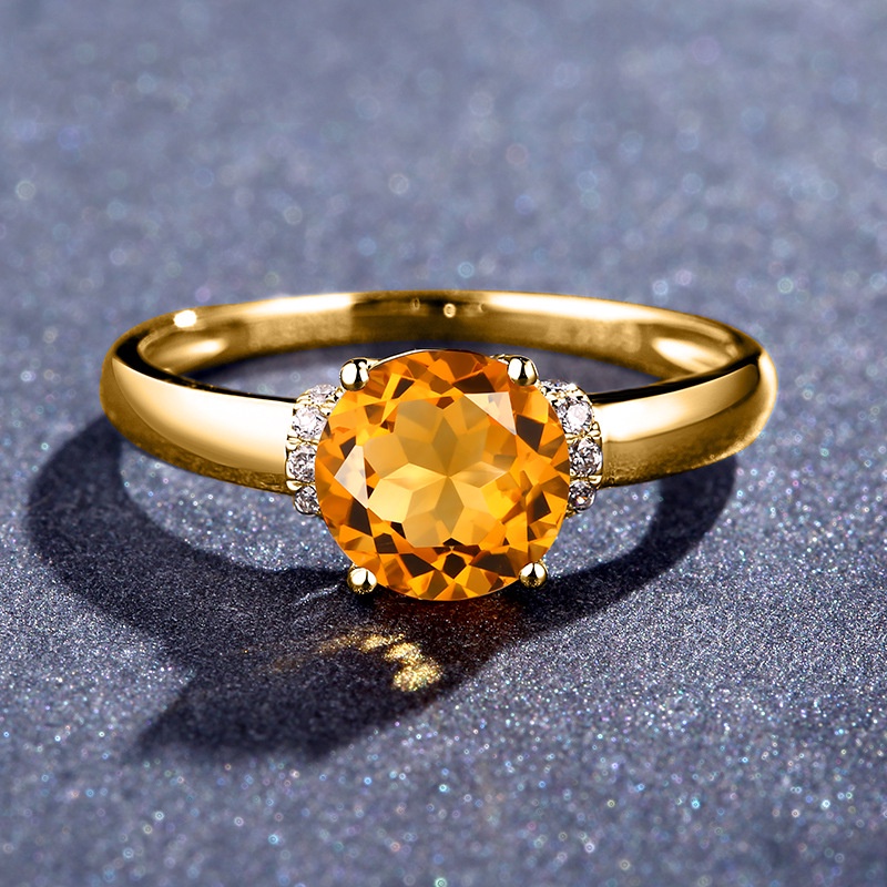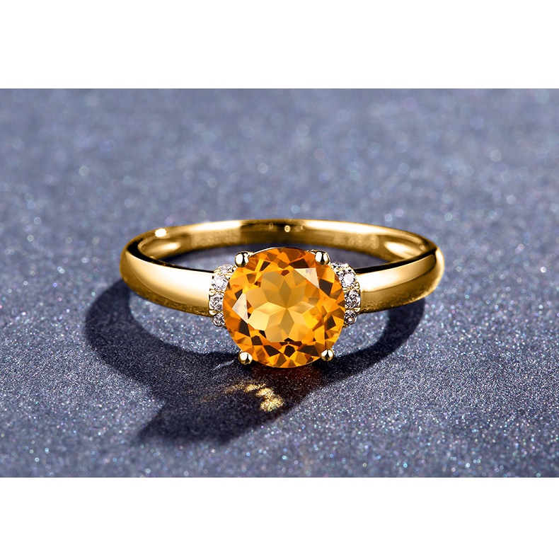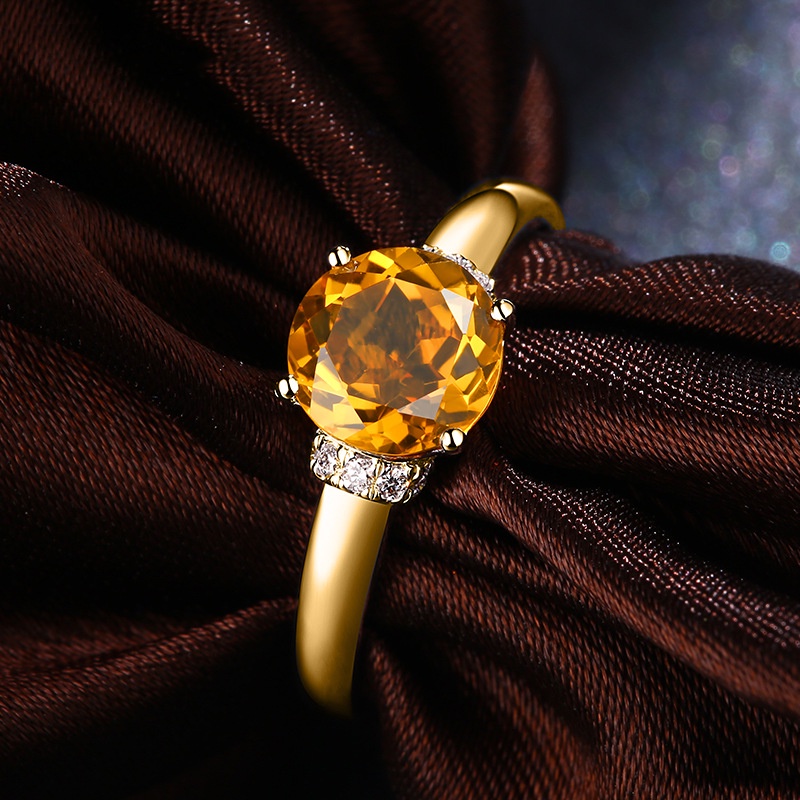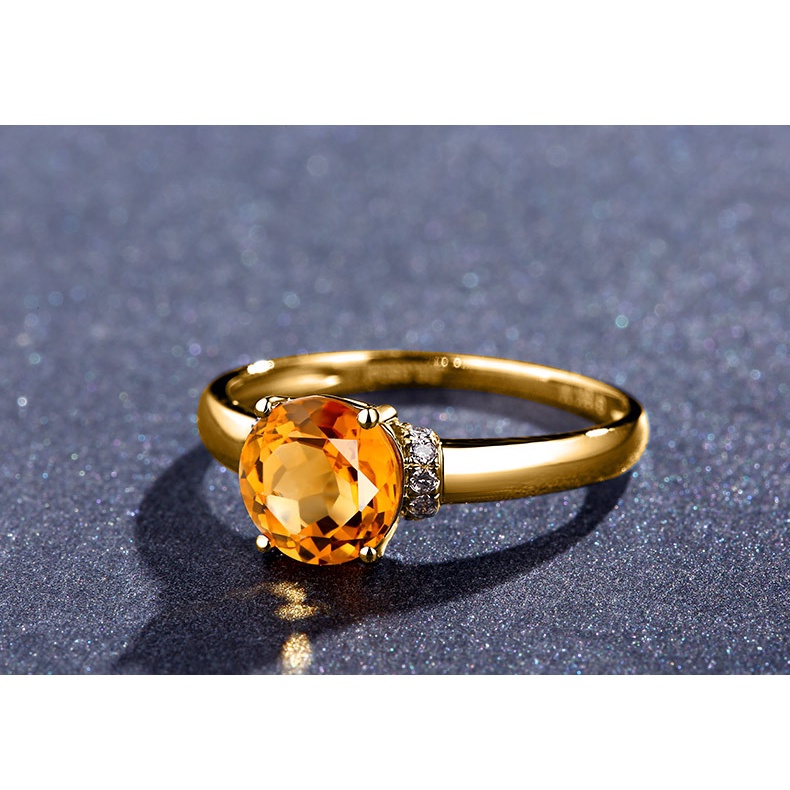 Anel De Ouro Original Redondo De Citrino 18K Jóias Femininas De Boca Ao Vivo