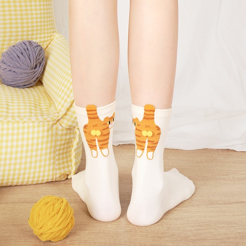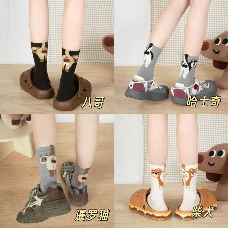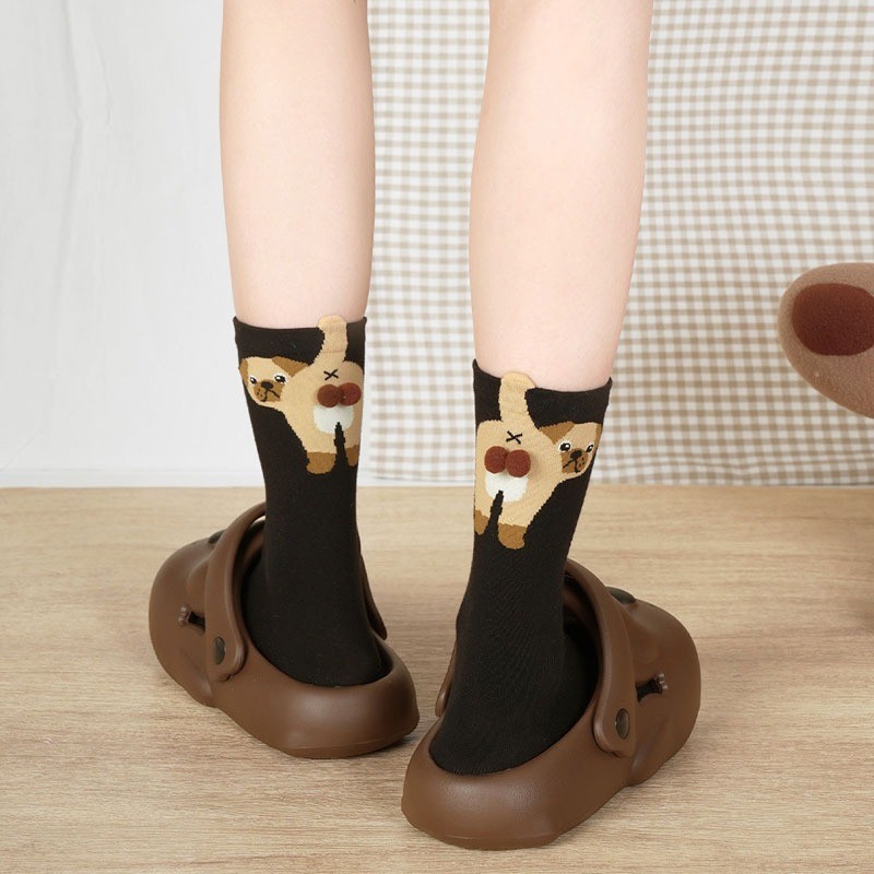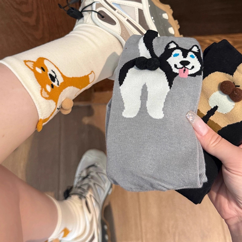 Criativo Divertido Dos Desenhos Animados Bonito Cão Bolas Meias De Algodão Kawaii Lolita Animal Meio Tubo