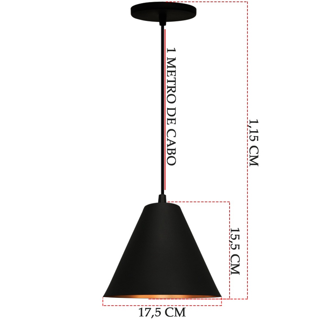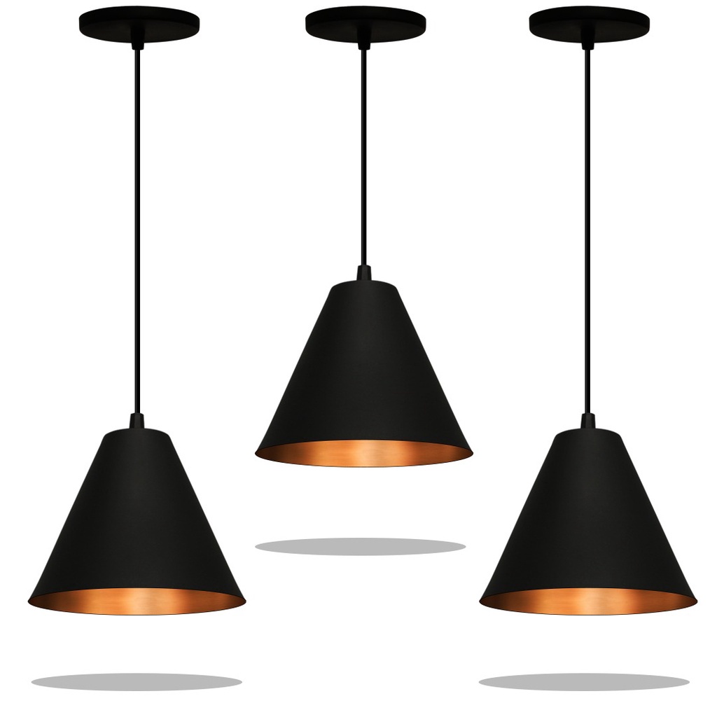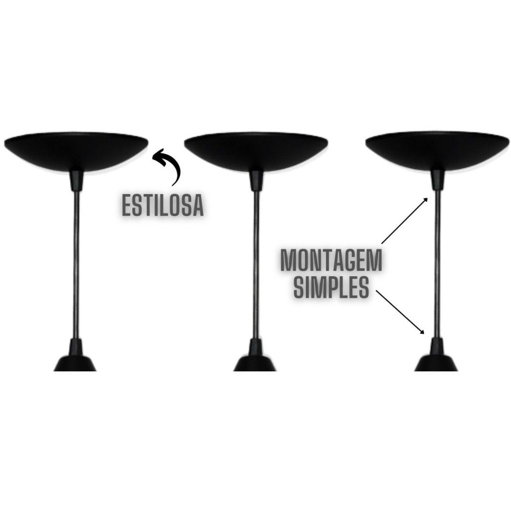 Preto com textura Licon lustre kit 3 luminaria