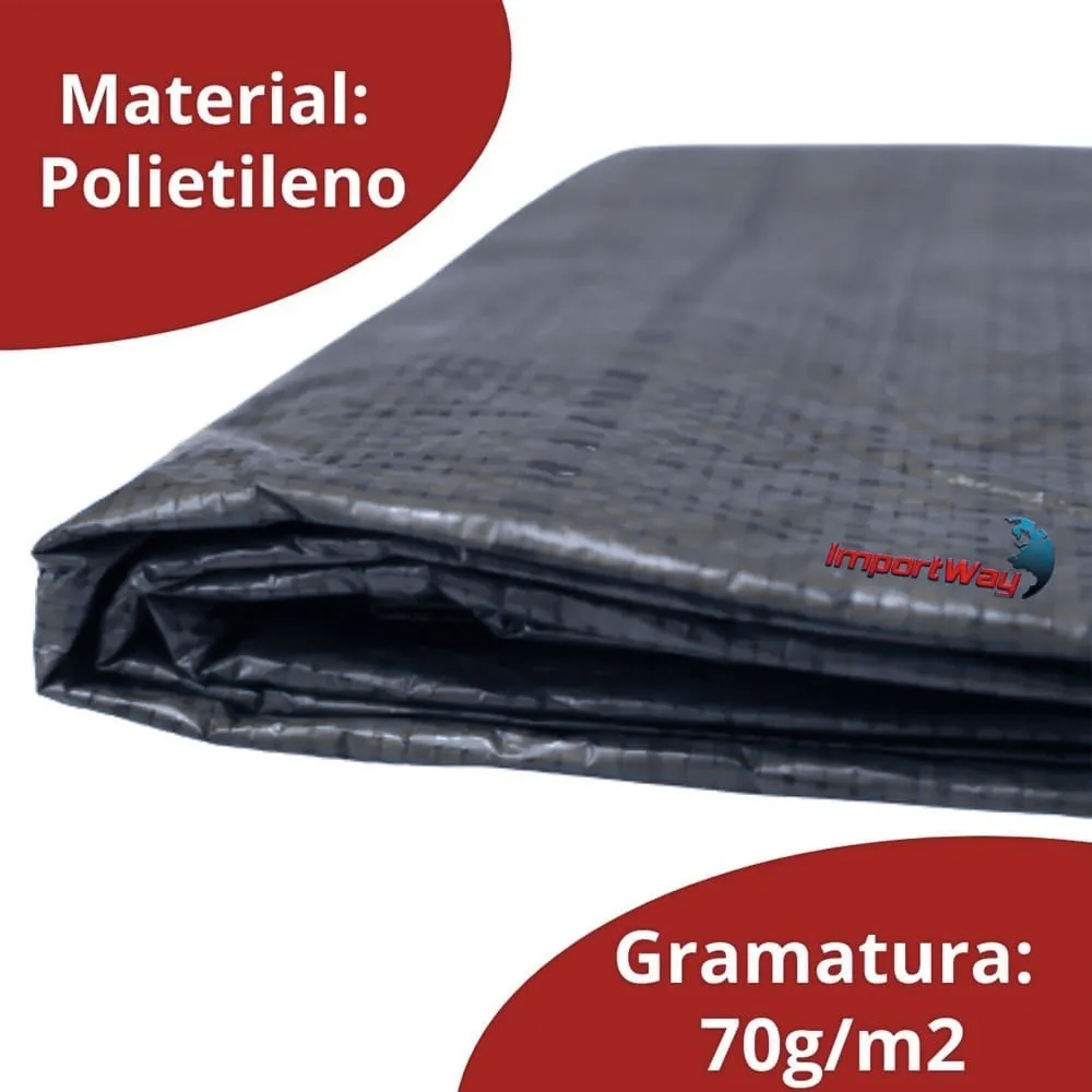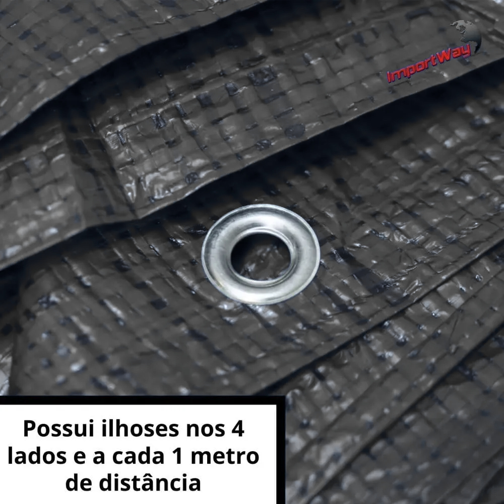 Lona Multiuso 4 x 3 Metros Cinza Impermeável Plástica 100 Micras com Ilhós Reforçados