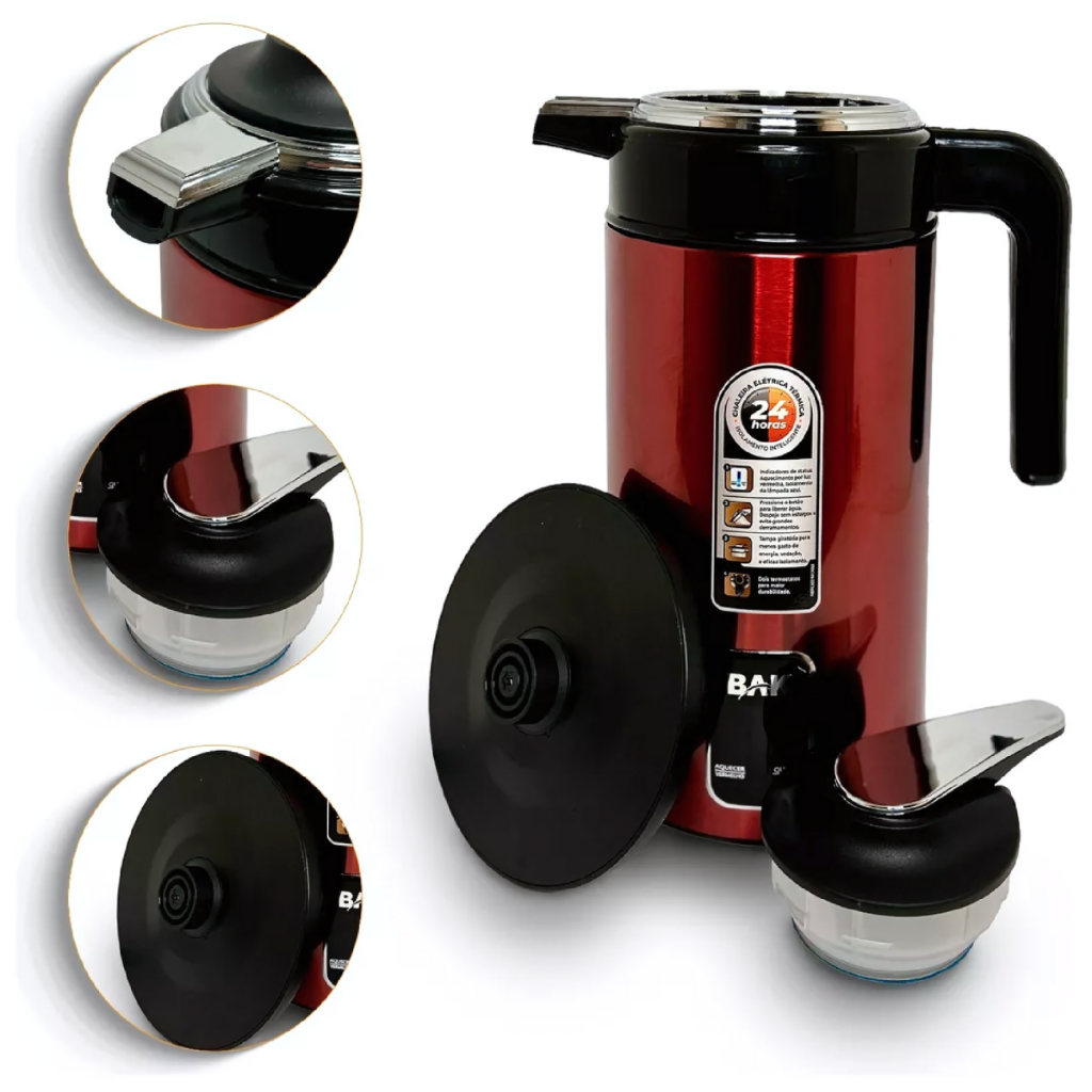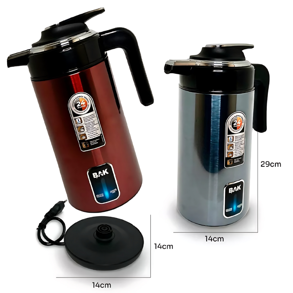 Jarra Elétrica Bule Chaleira 1,8 Litros Base Giratória 1100w Aço Inox Térmico 24 Horas