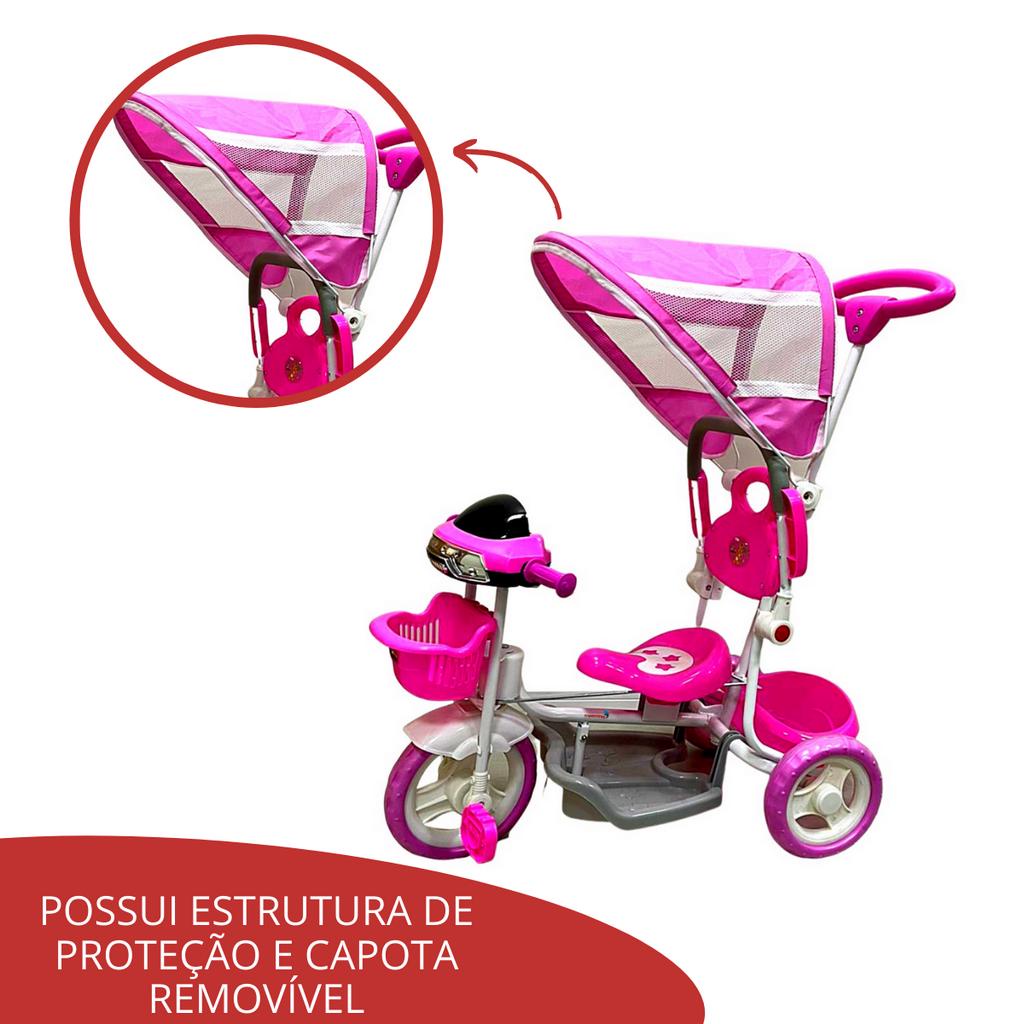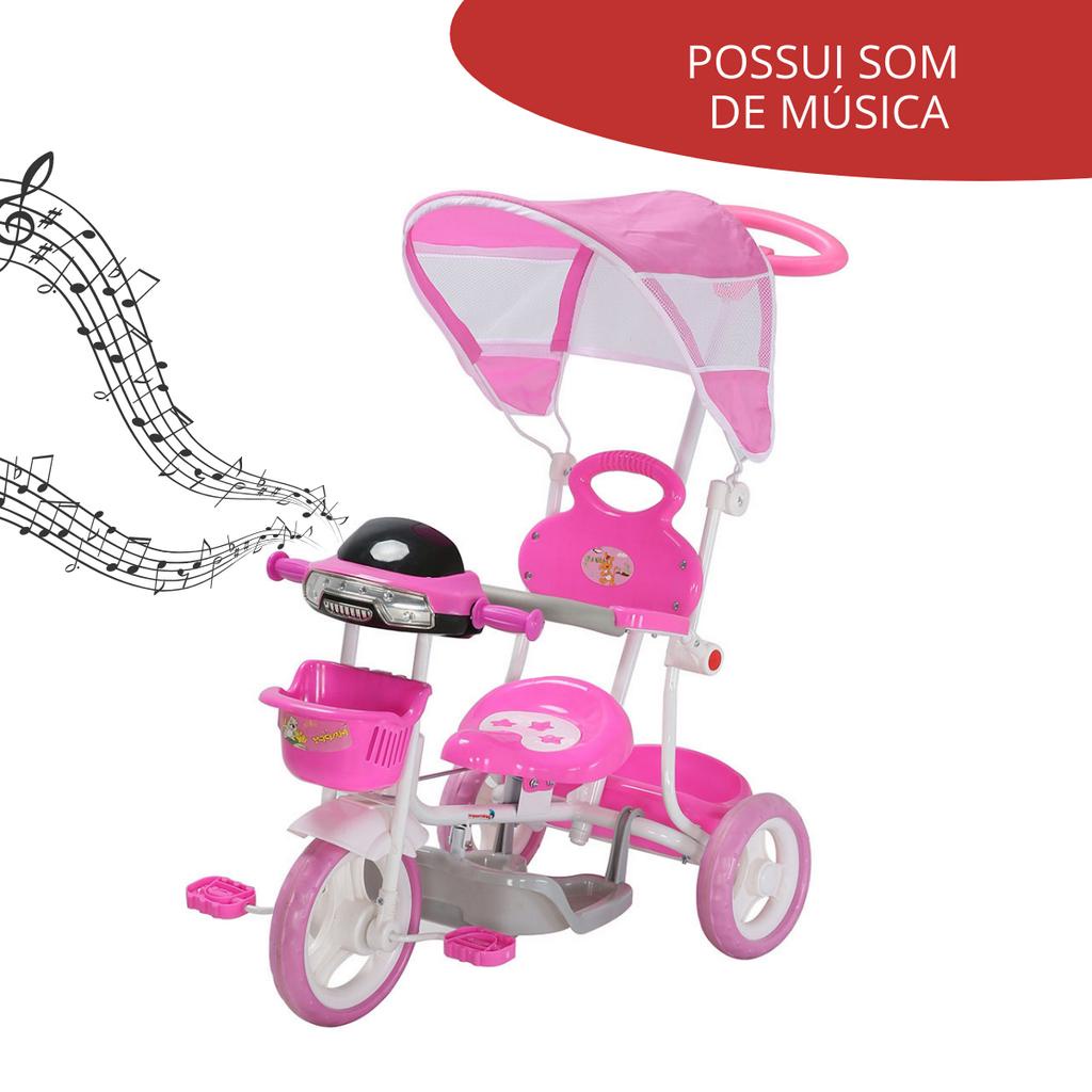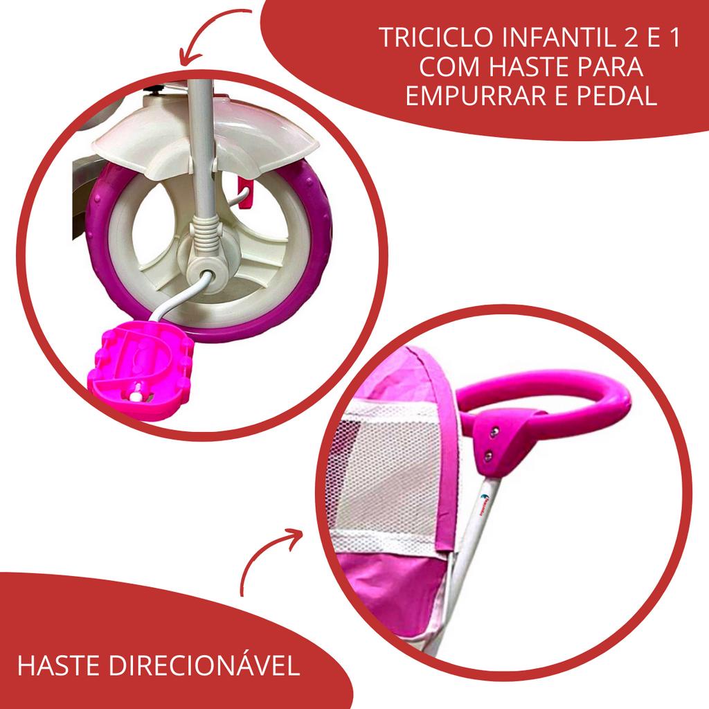 Triciclo Infantil 2 em 1 com Haste Empurrador Pedal Capota Música Farol