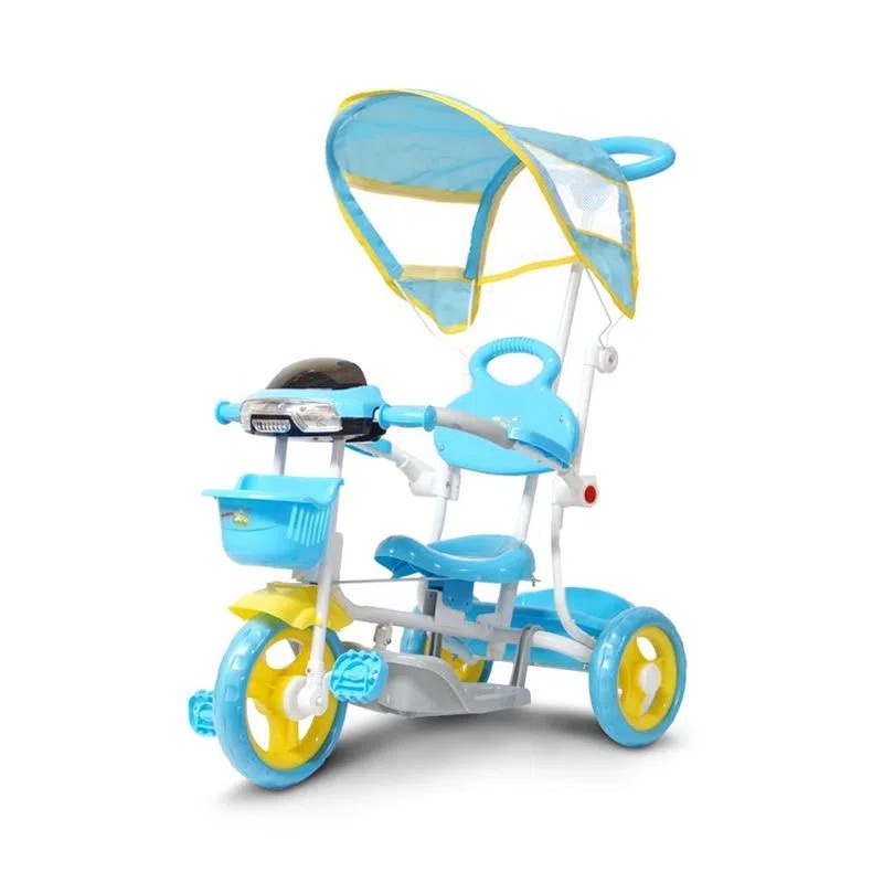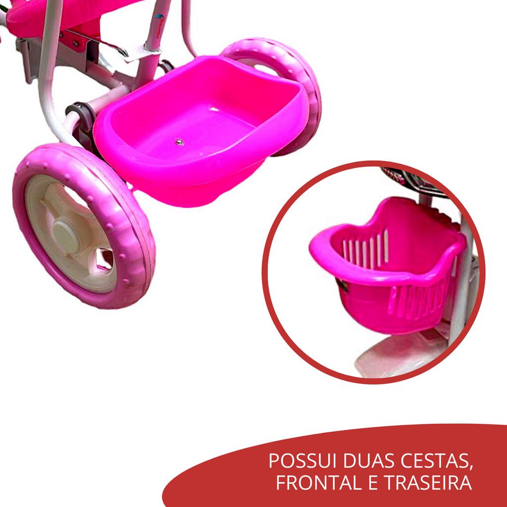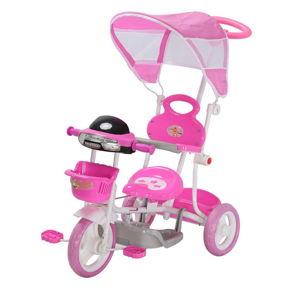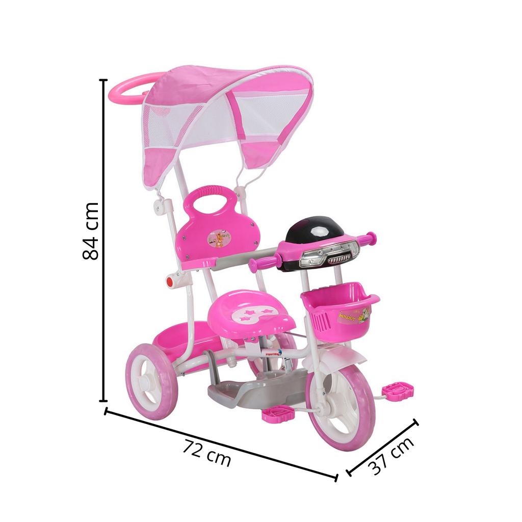 Triciclo Infantil 2 em 1 com Haste Empurrador Pedal Capota Música Farol