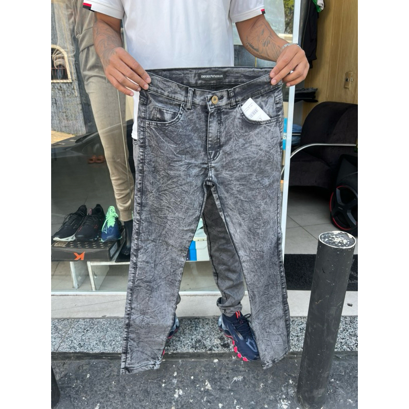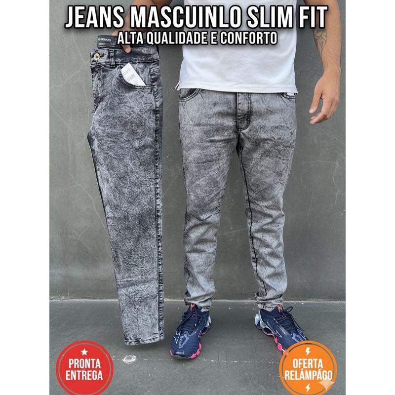 Calça Jeans Masculina Cinza Estonada Premium Corte Reto Confortável e Estilosa