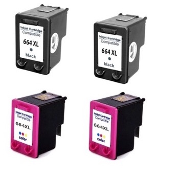 KIT 4 CARTUCHO JATO DE TINTA 664XL 2 BLACK + 2 COLOR P/ 1115 2134 2676