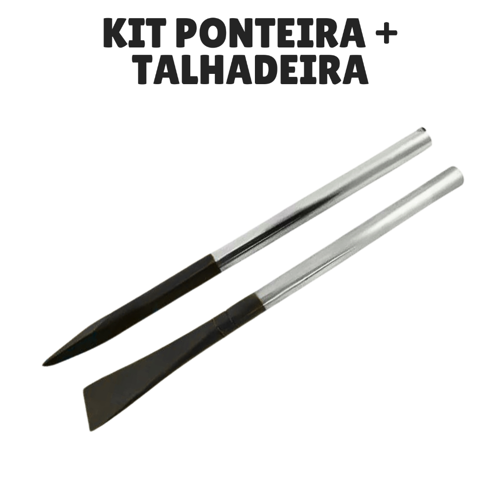 Marreta 1kg Ferro Fundido Com Cabo + Talhadeira e Ponteiro Kit Talhadeiras 3/4