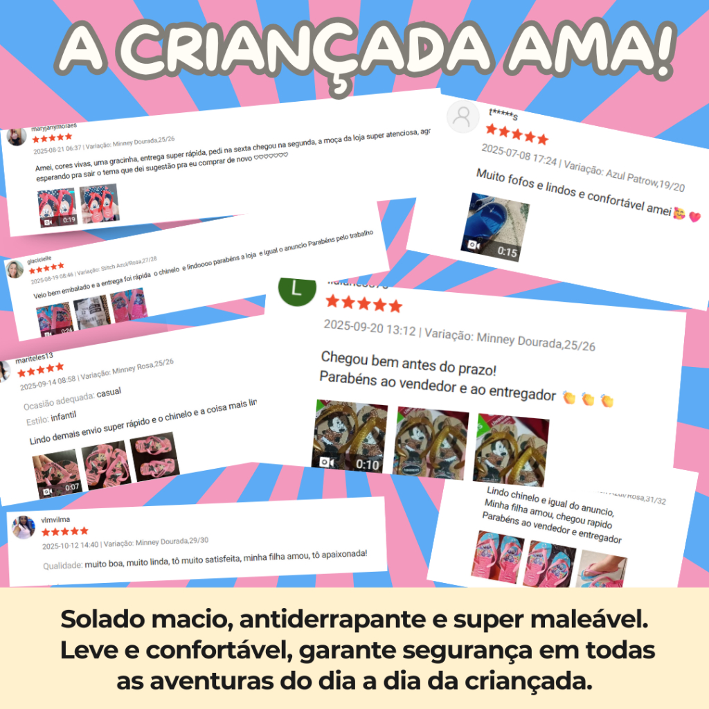 Chinelo Infantil de Menina do 25 26 27 28 29 30 31 32 Personagens Fofos Stitch Minney Super Leve Confortável Verão Kids