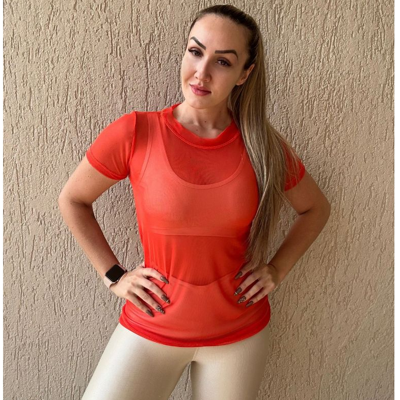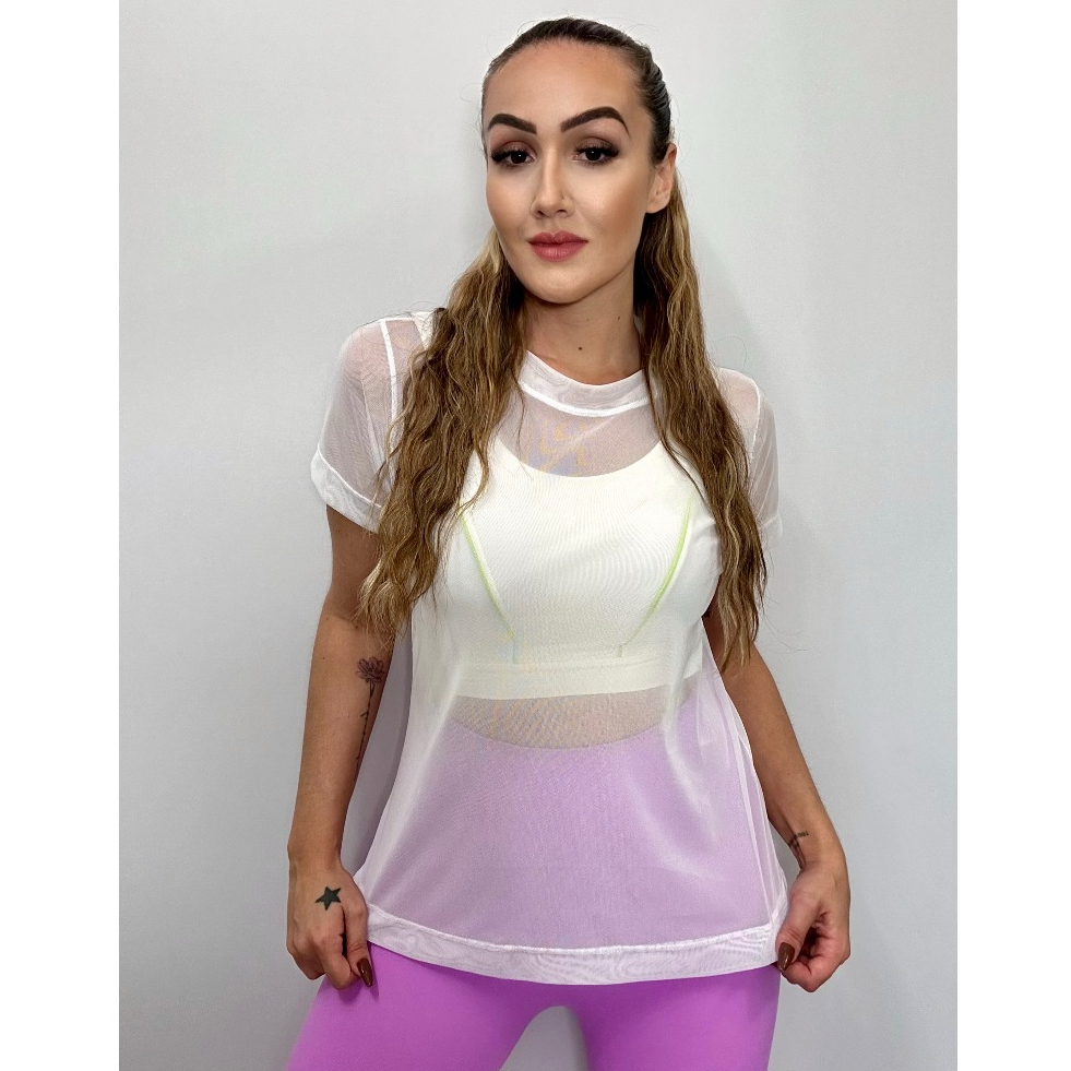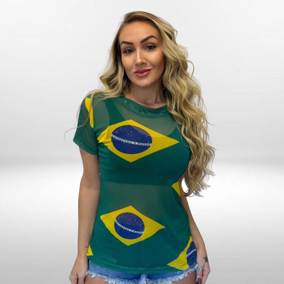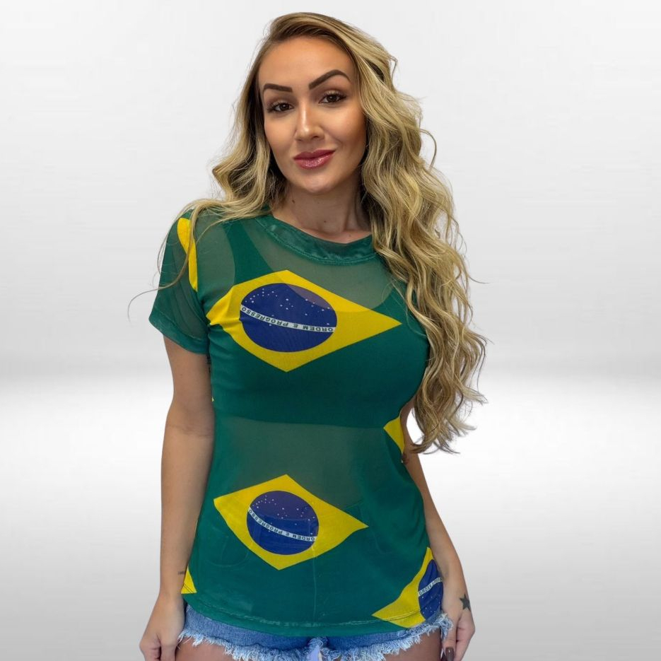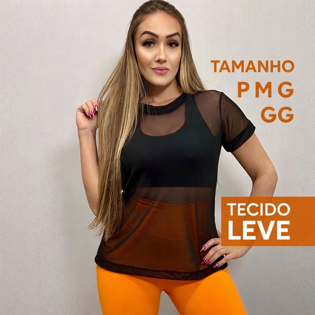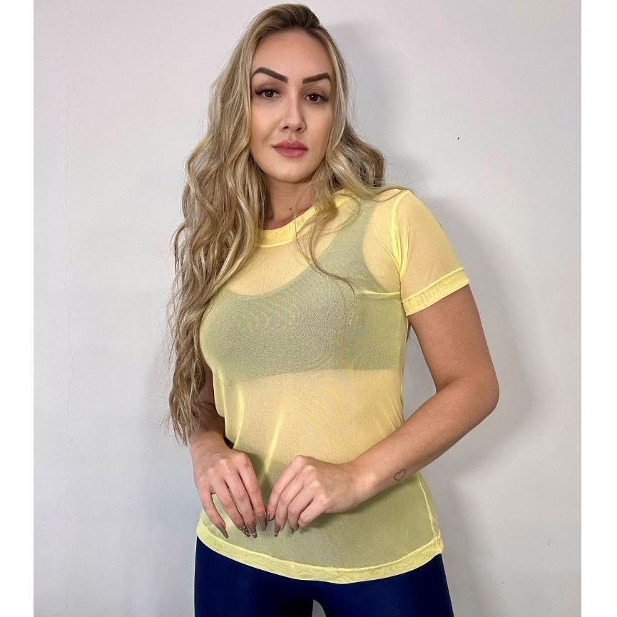 Blusa Feminina De Tule Transparente Academia Fitness Camisão Fitness Brasil Copa do Mundo