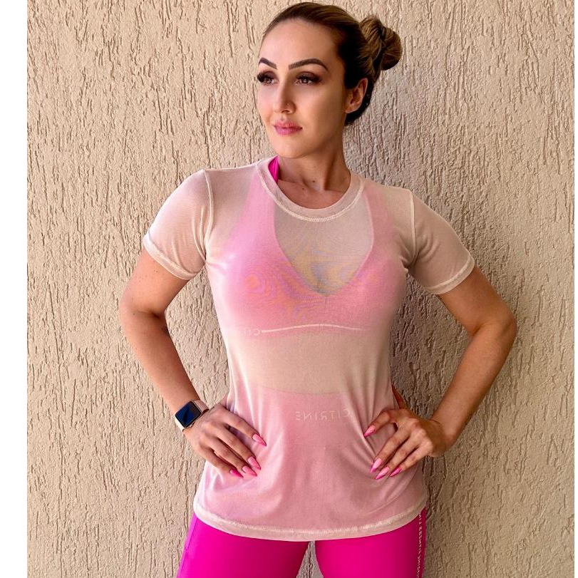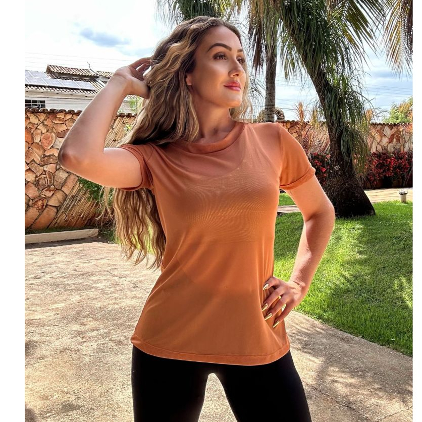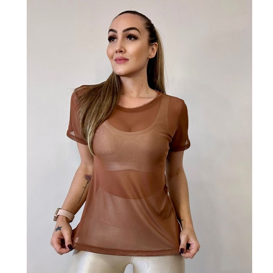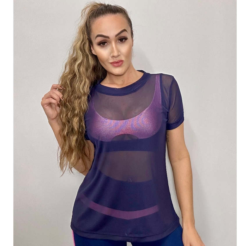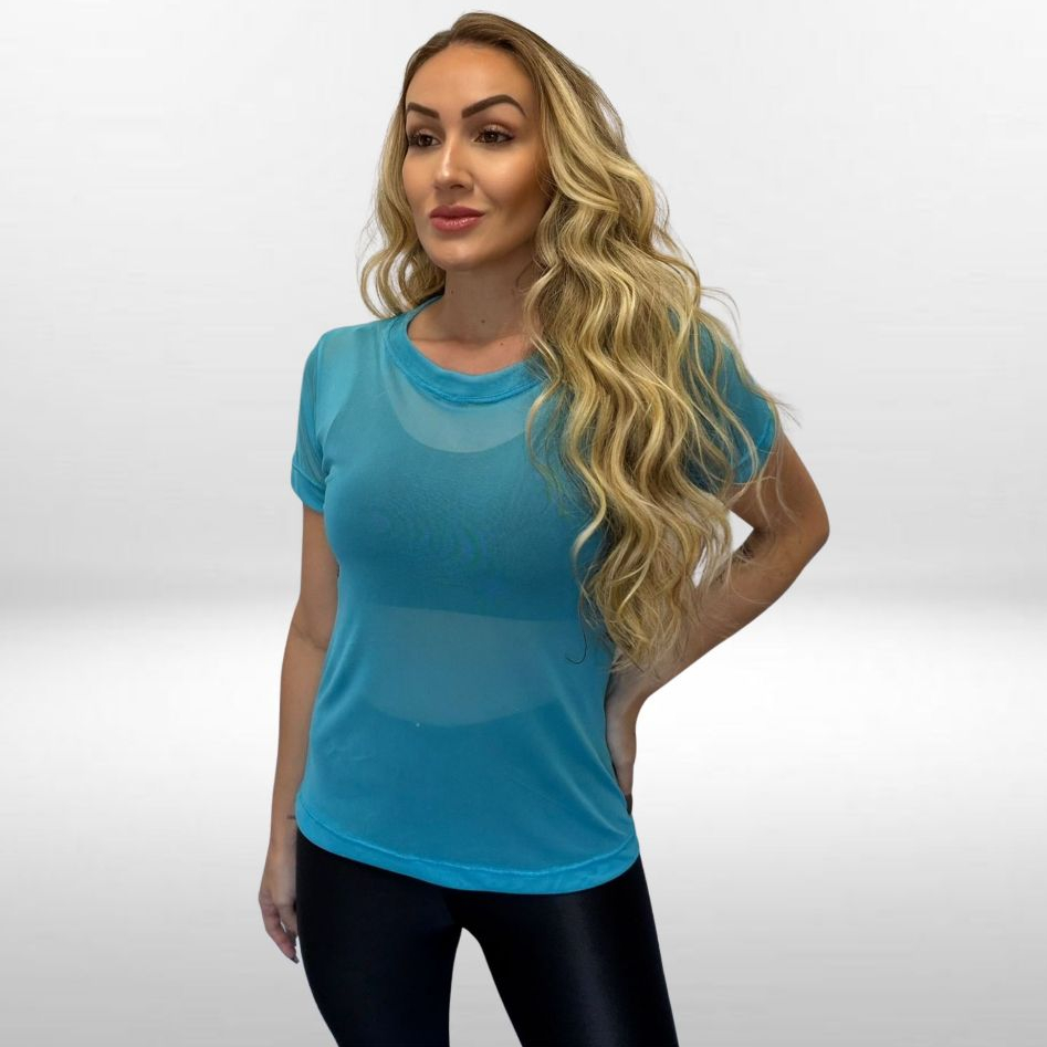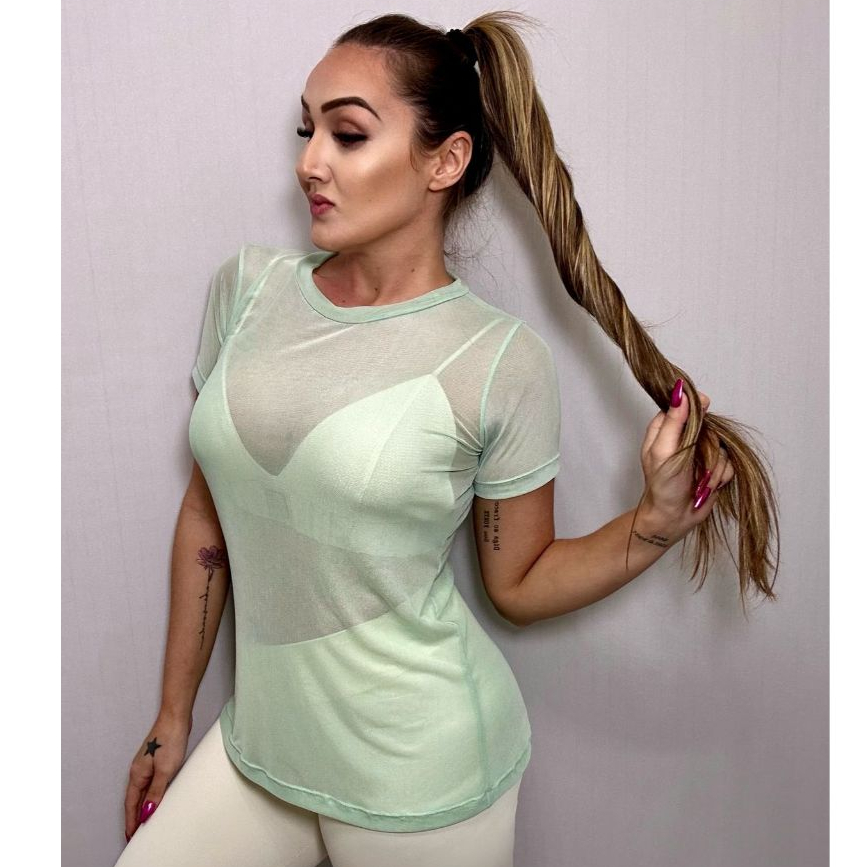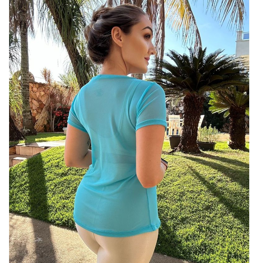 Blusa Feminina De Tule Transparente Academia Fitness Camisão Fitness Brasil Copa do Mundo