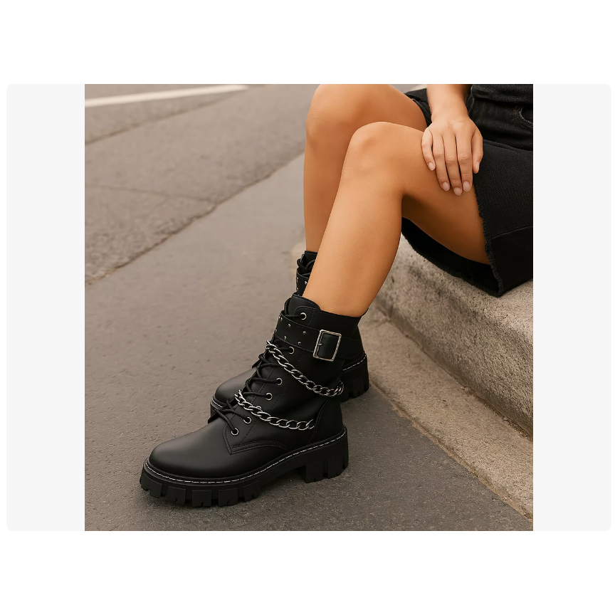 Bota Coturno Tratorada Rock Corrente Cano Medio