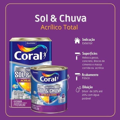 Tinta Acrílico Total Fosca Sol Chuva Branco Coral 3,6l