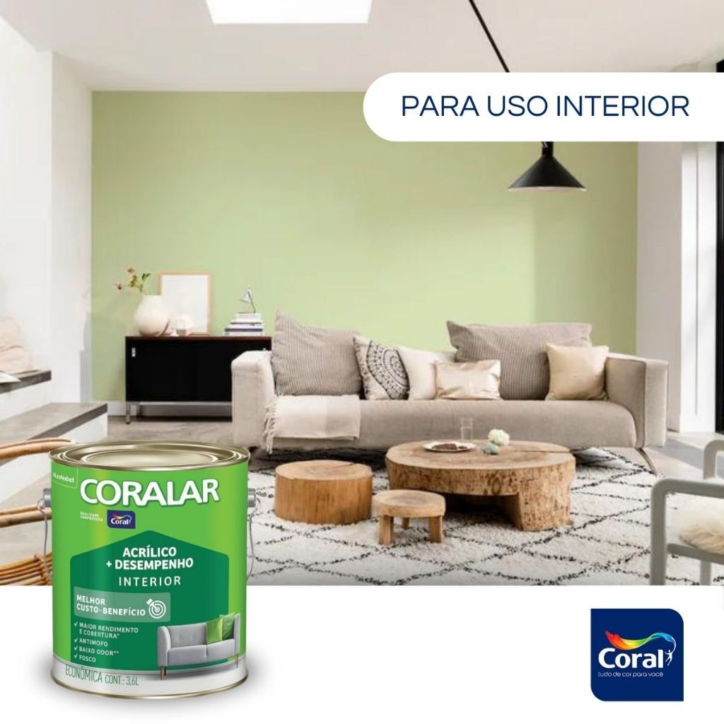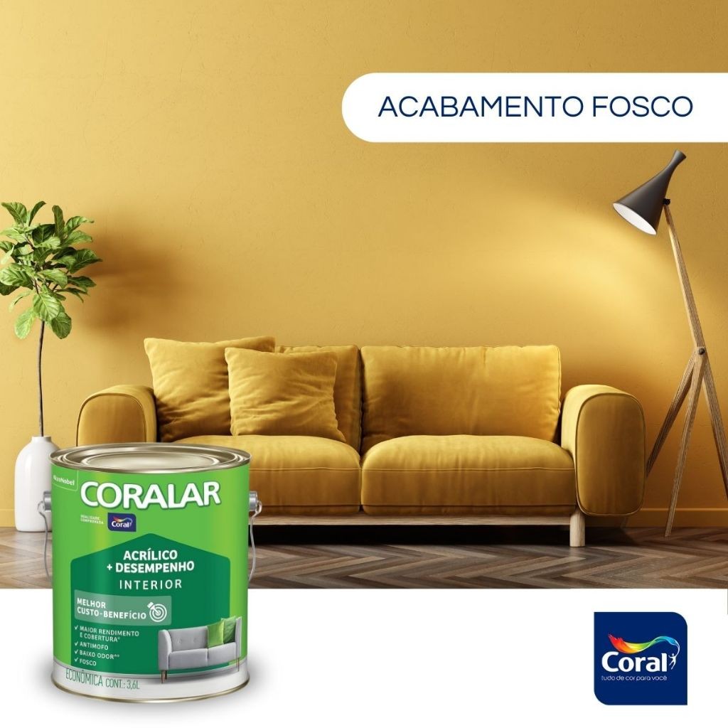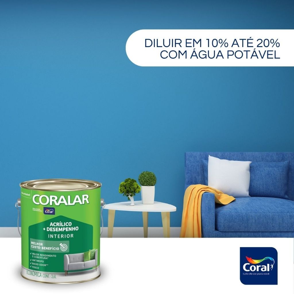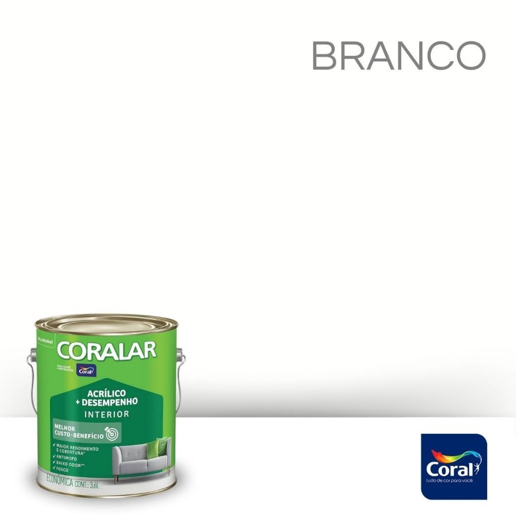 Tinta Coralar Anti Mofo Acrilica Parede e Teto 3,6 Litros Escolha A Cor Fosco Interior Cores Coral