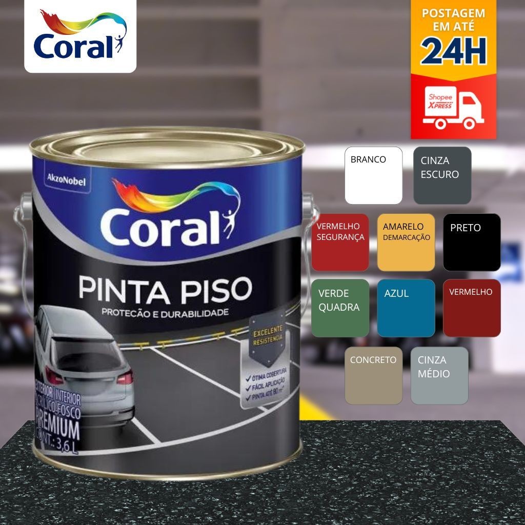 Tinta Piso Coral 3,6L Cores para Áreas Externas, Concretos, Garagens, Calçadas E Varandas