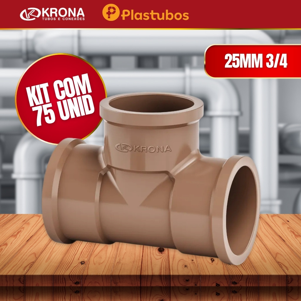 Kit Te 25 unidades 25mm 3/4 soldável em PVC Krona
