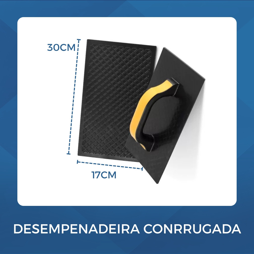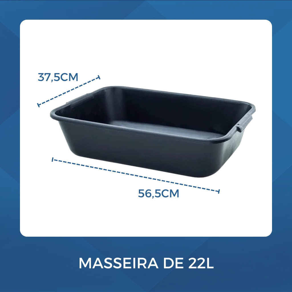 Kit Caixa de Massa Masseira 22L + Colher de Pedreiro Espatula Desempenadeira Broxa Bloco Espuma