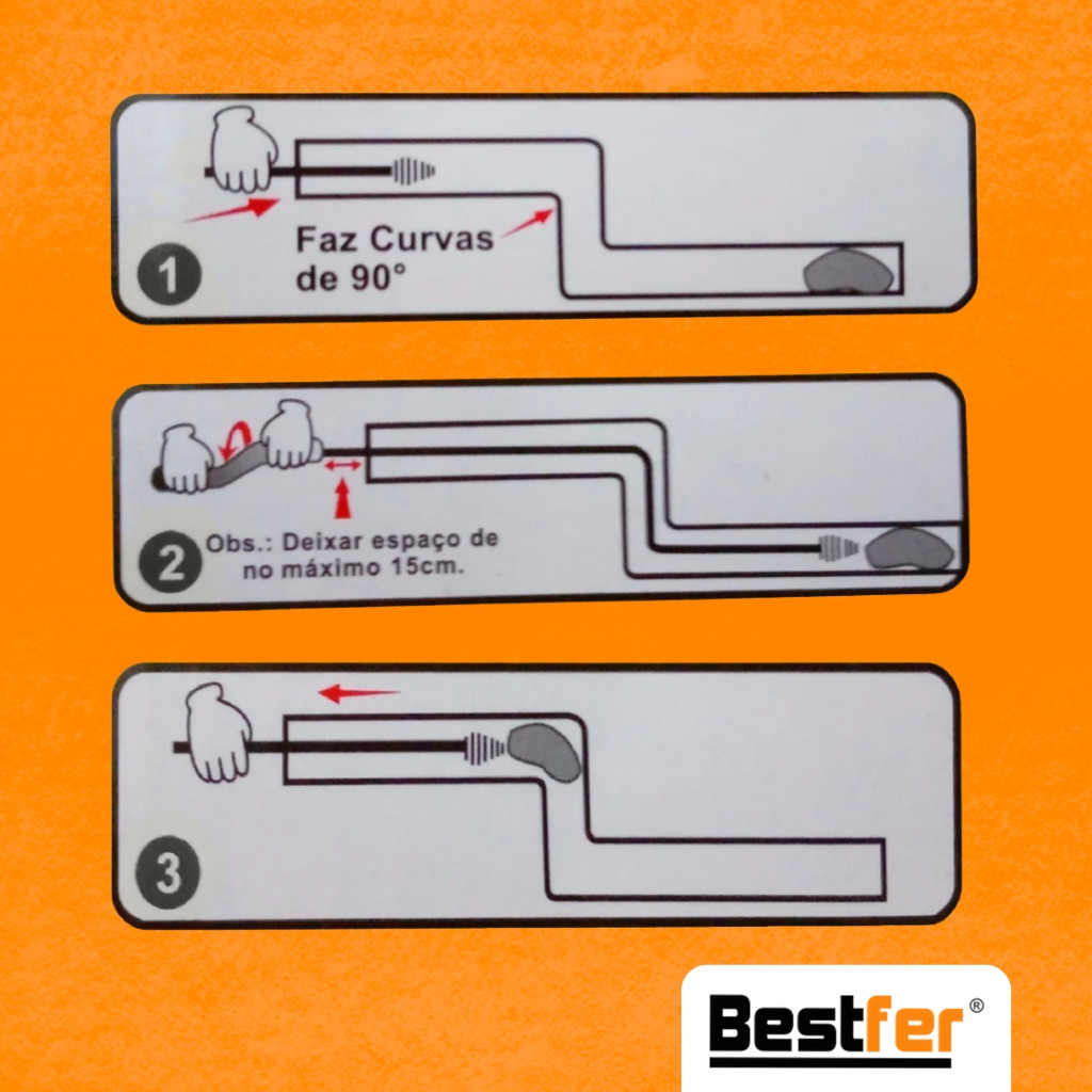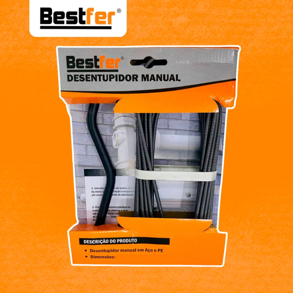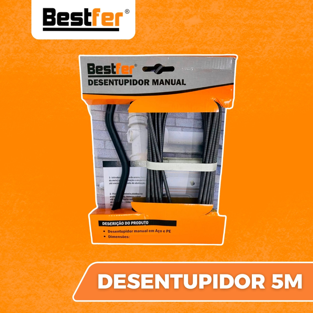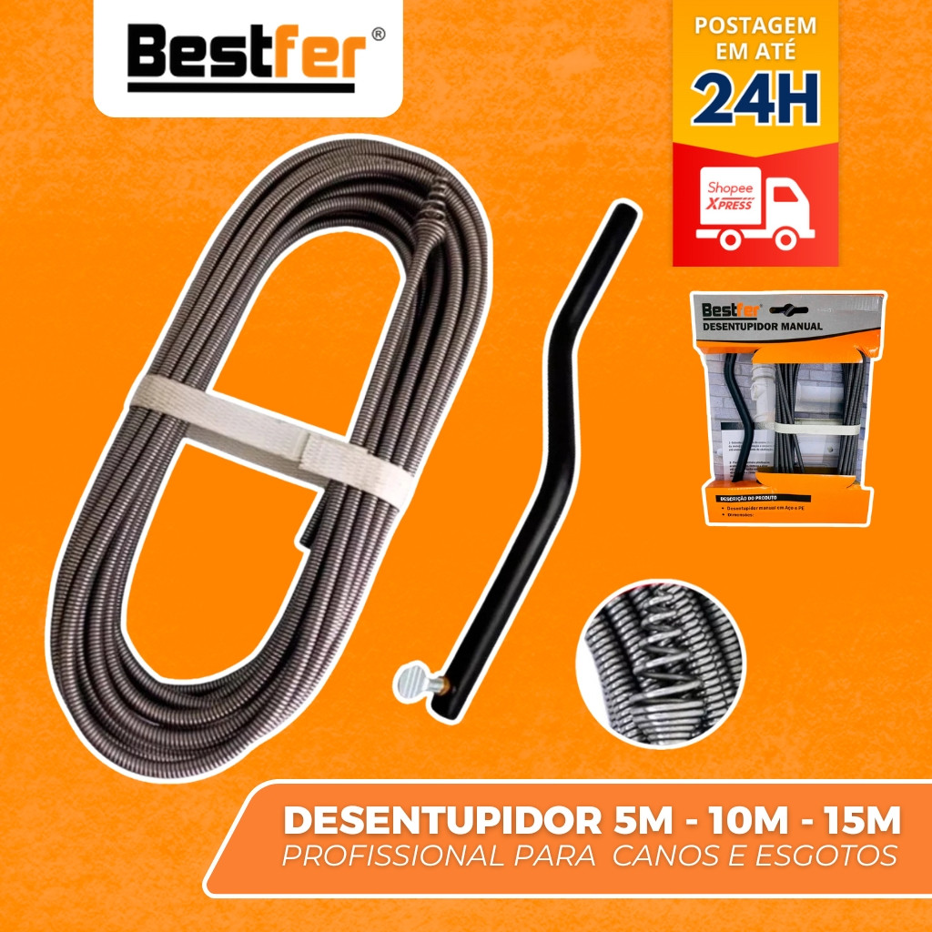 Desentupidor Manual 5m a 15m Mola de Aço Ralo Pia Banheiro Cozinha Quintal Cano Calha Bestfer