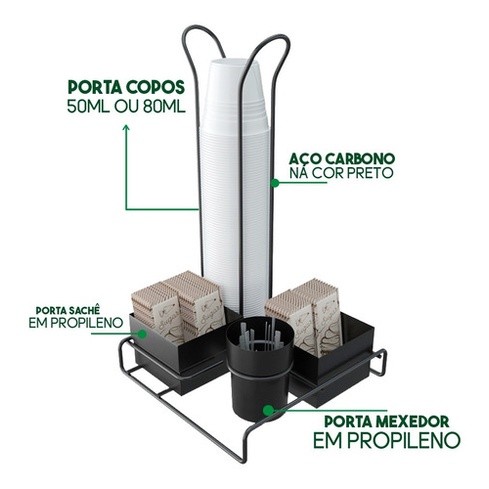 Organizador Mesa de Cafe Chá Aramado, Porta Sachê, Adoçante, Mexedor e Copo Descartável 50/80ml