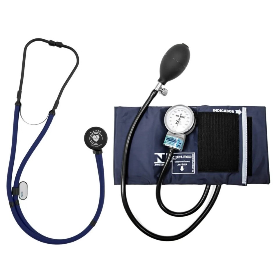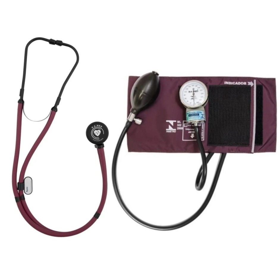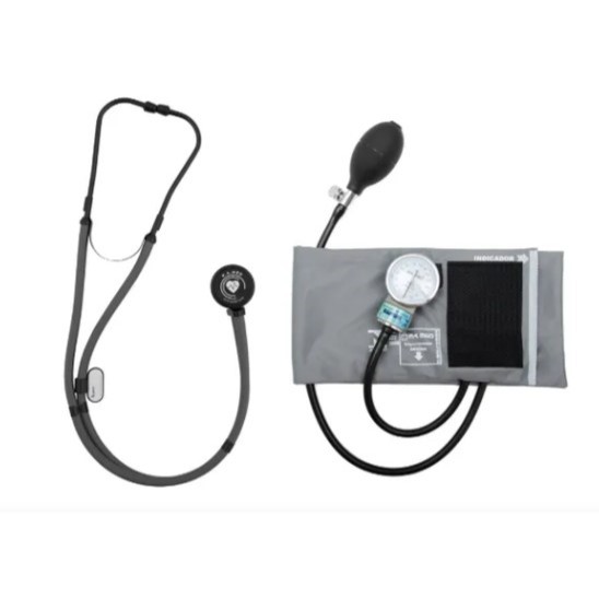 Estetoscópio Rappaport + Esfigmomanômetro Com Bolsinha Linha Black P.A. Med