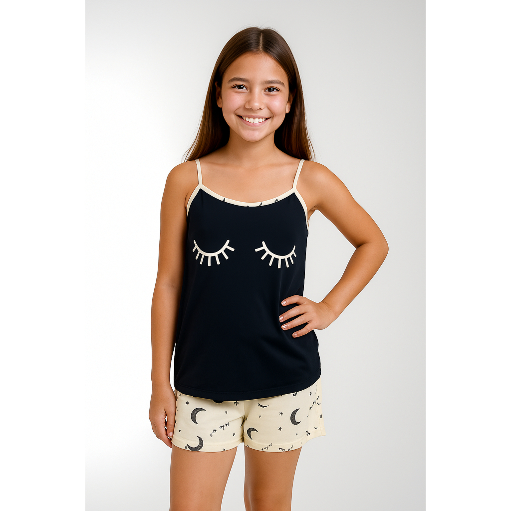 Kit Baby Doll Mãe e Filha Cilios Fofo Malha Premium Pijama Curto Promoção Verão Alcinha Short Doll