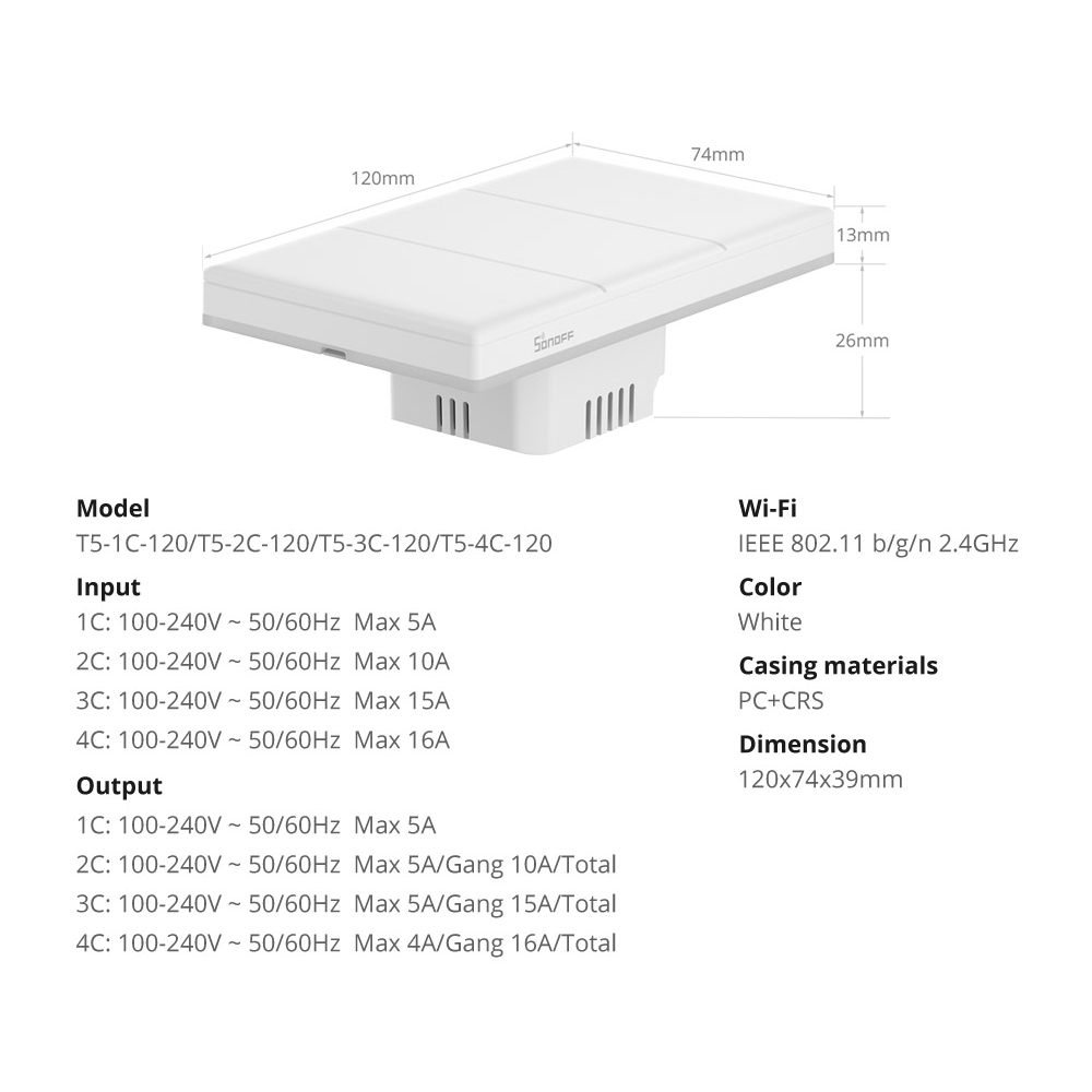 SONOFF T5 120 TX Ultimate WIFI Interruptor Inteligente De Parede Por Toque Controle Remoto Multi-Sensory eWeLink via Alexa Google