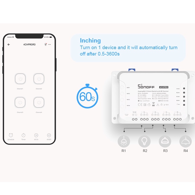 SONOFF 4CH PRO R3 Wifi Smart Switch 4 Gang Inching/Self-Locking/Interlock Dispositivo De Controle Sem Fio Para Casa Inteligente DIY