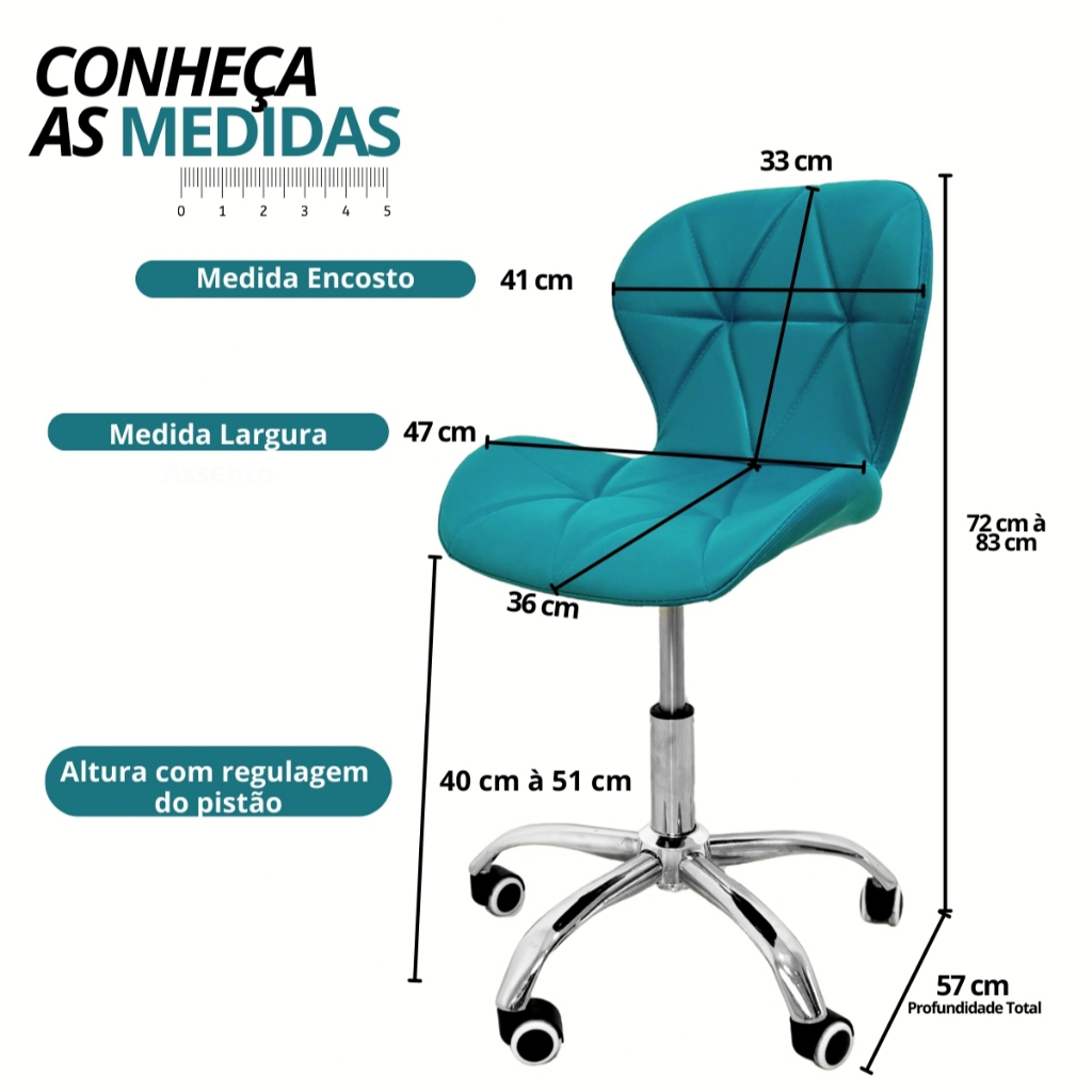 Cadeira Office Eiffel Slim Base Giratória Turquesa