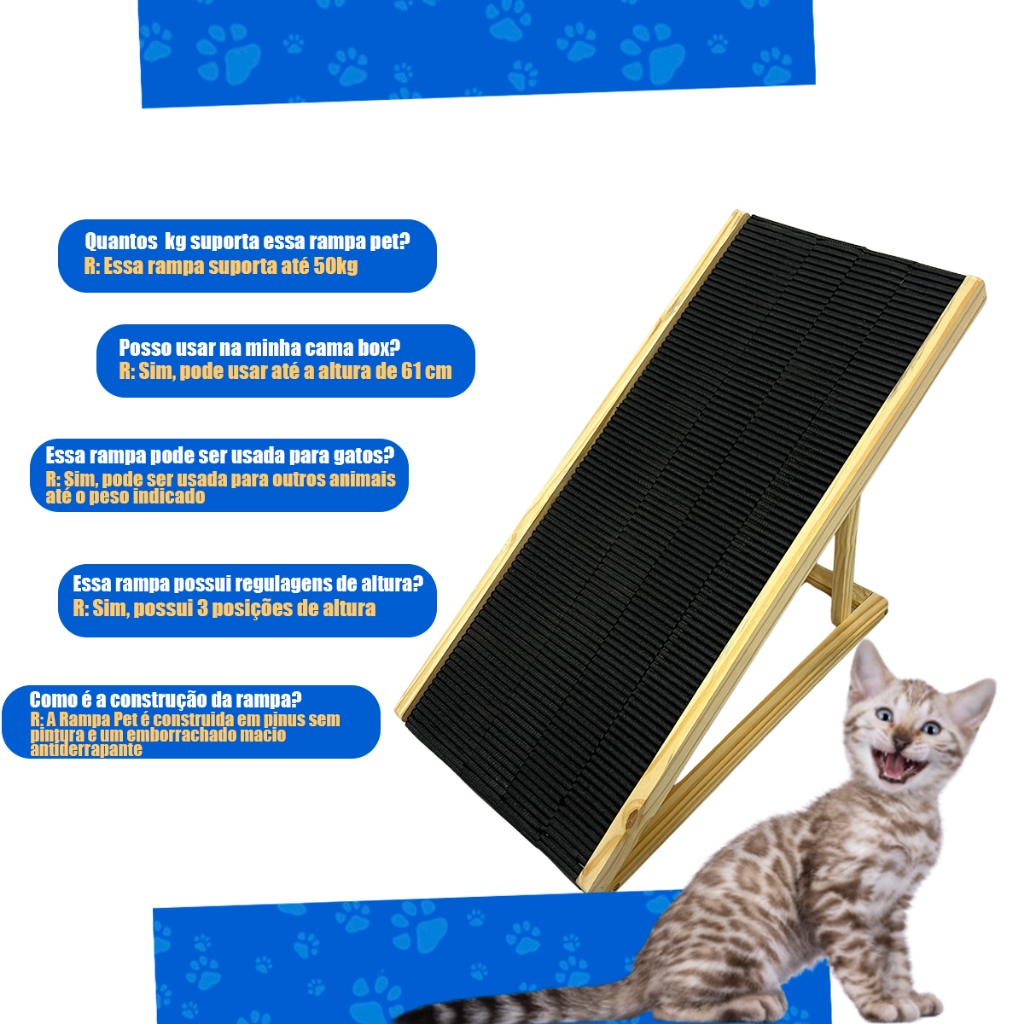 Rampa Pet para Cama e Sofá Antiderrapante Cães Gatos Ajustável Madeira Regulável Cachorros