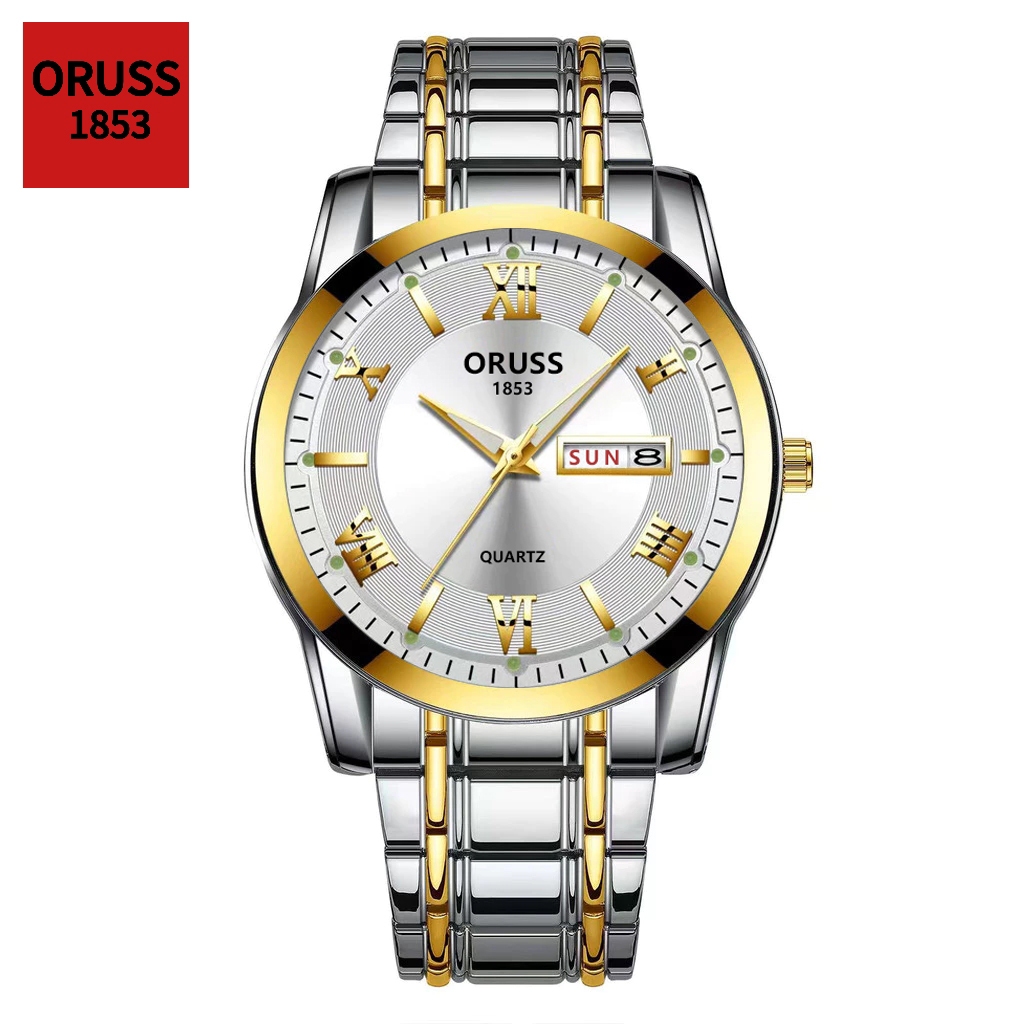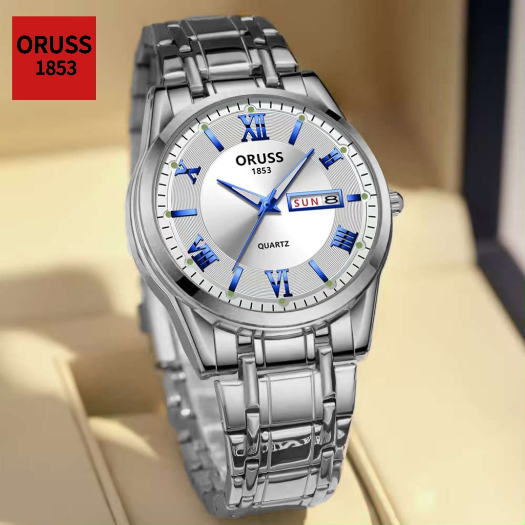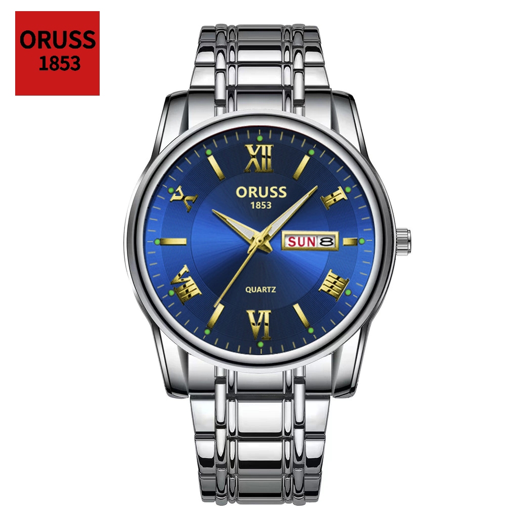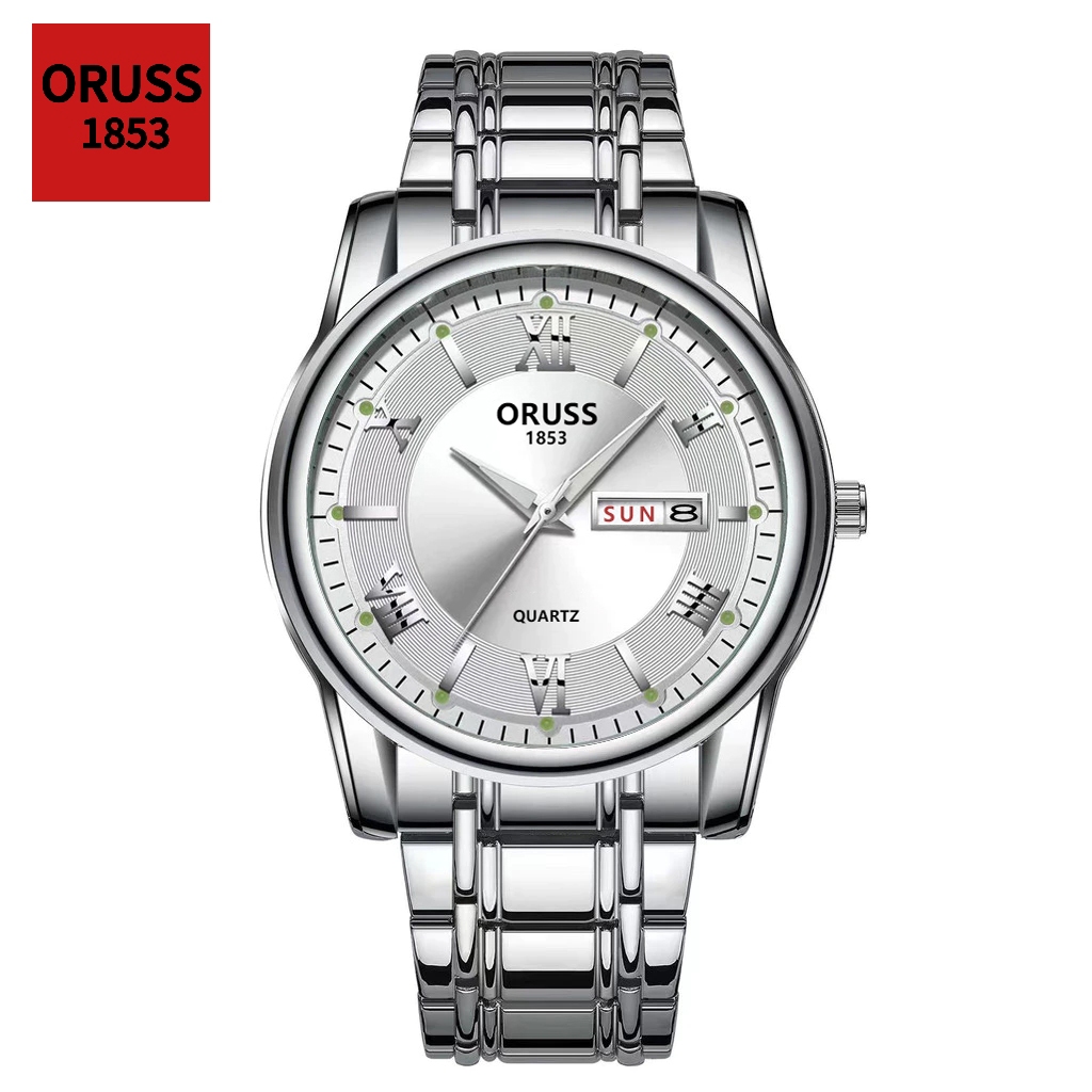 ORUSS Original Masculino Calendário Duplo Aço Inoxidável Luxo À Prova D 'Água Luminosa Moda Relógio Prata Coreano Relógi