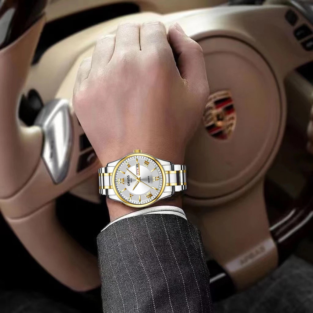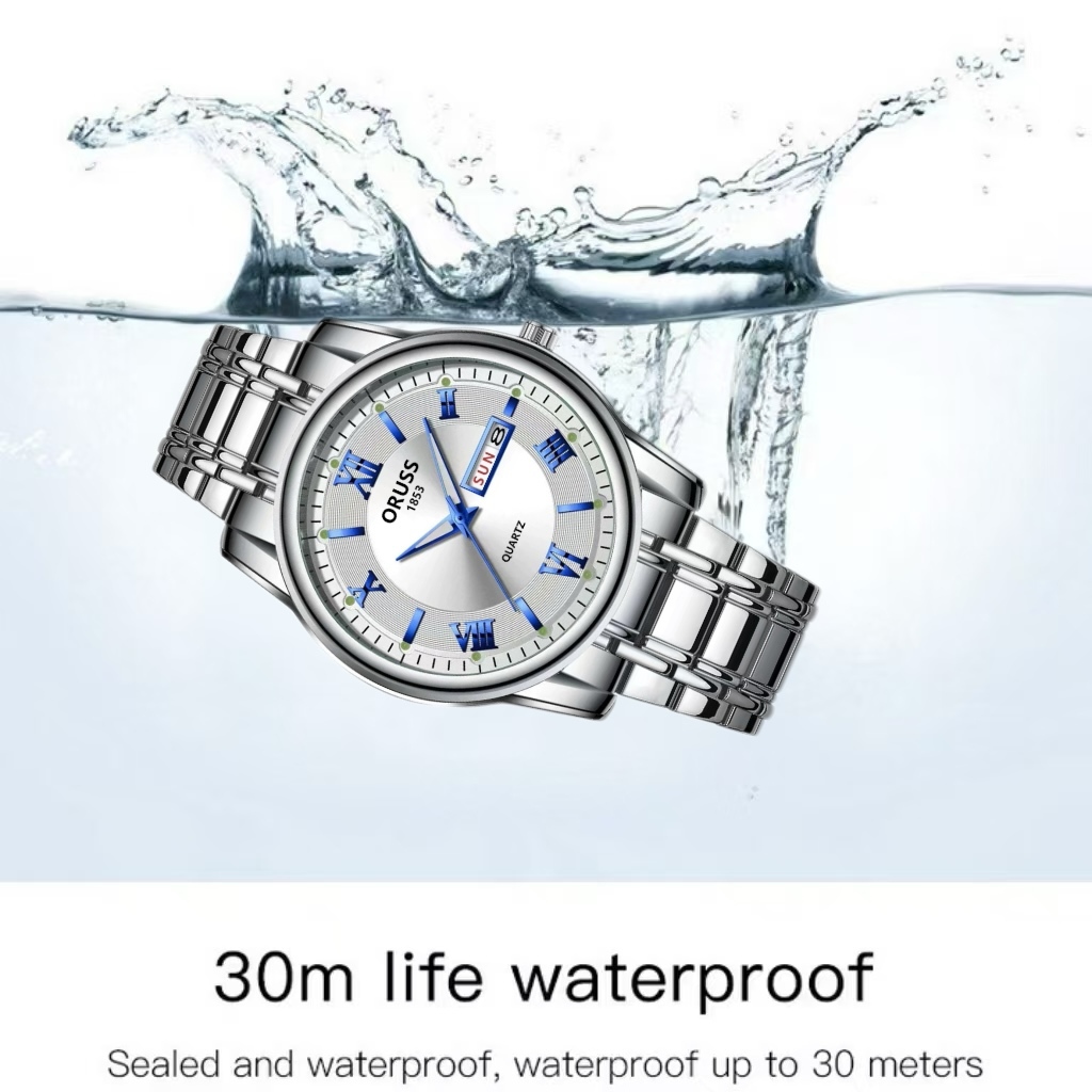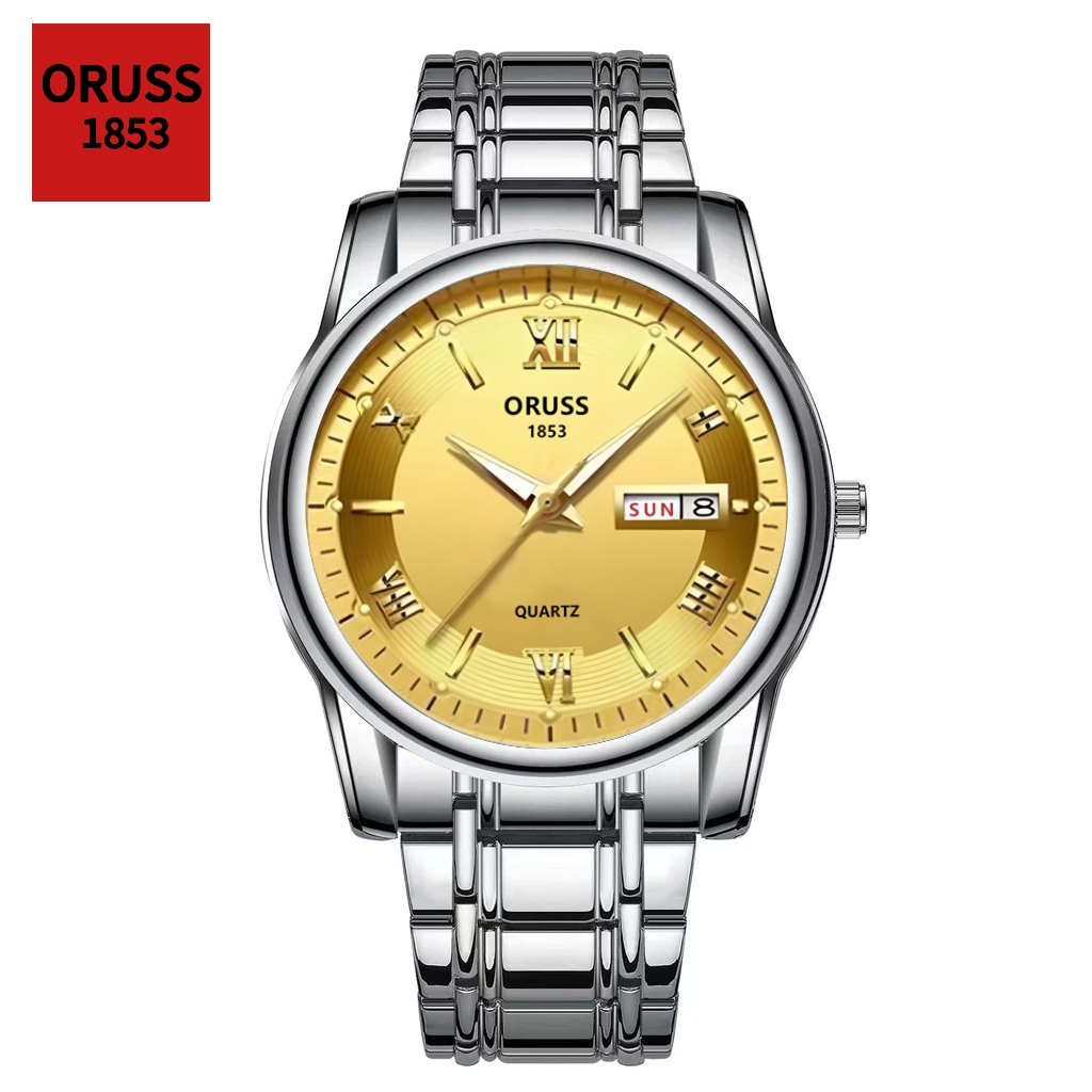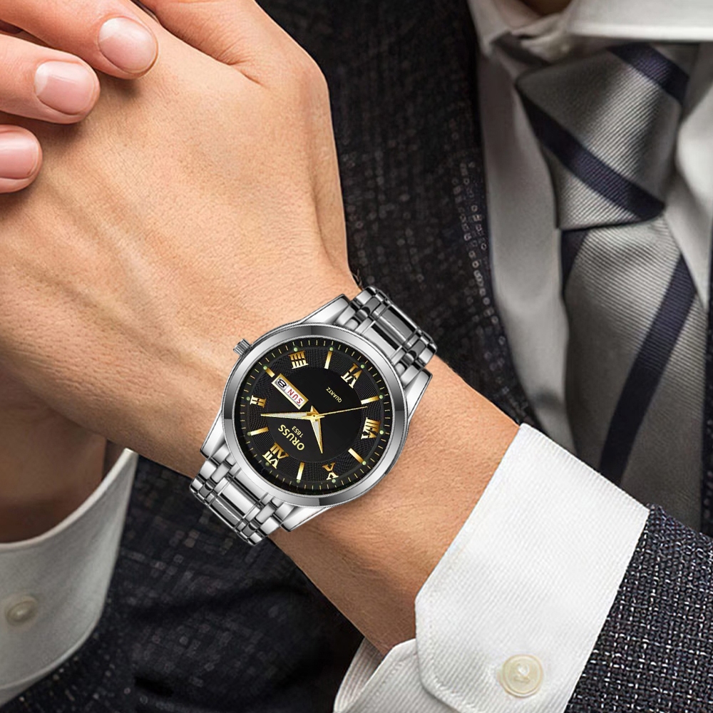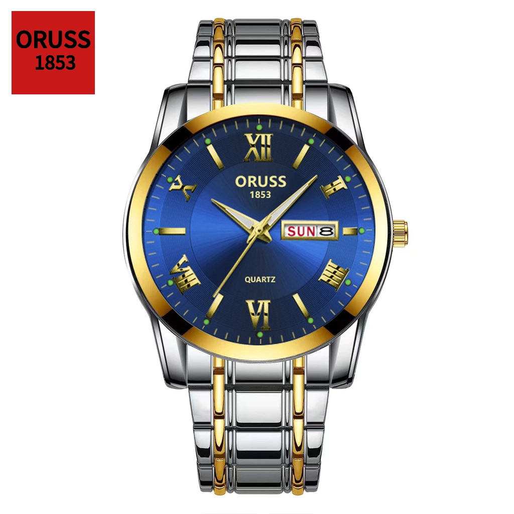 ORUSS Original Masculino Calendário Duplo Aço Inoxidável Luxo À Prova D 'Água Luminosa Moda Relógio Prata Coreano Relógi