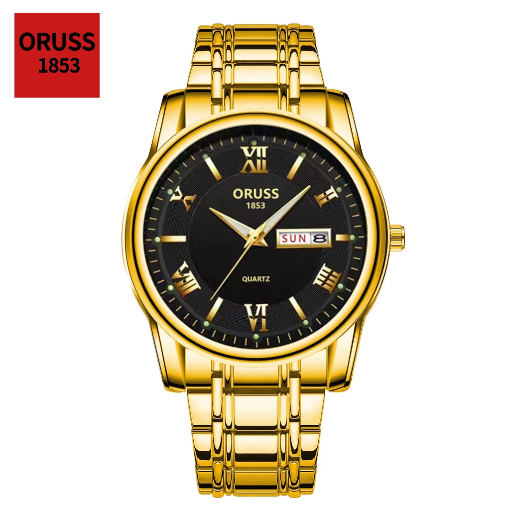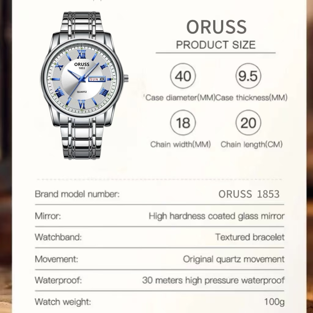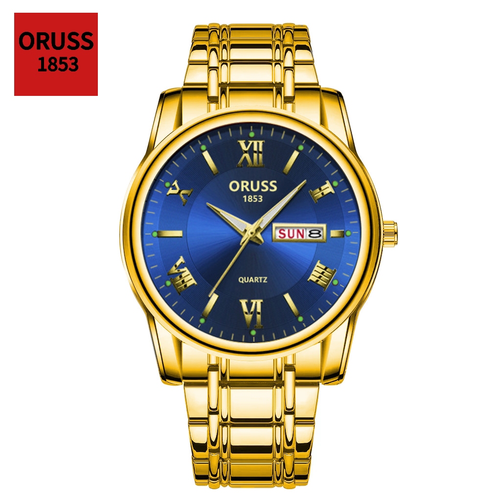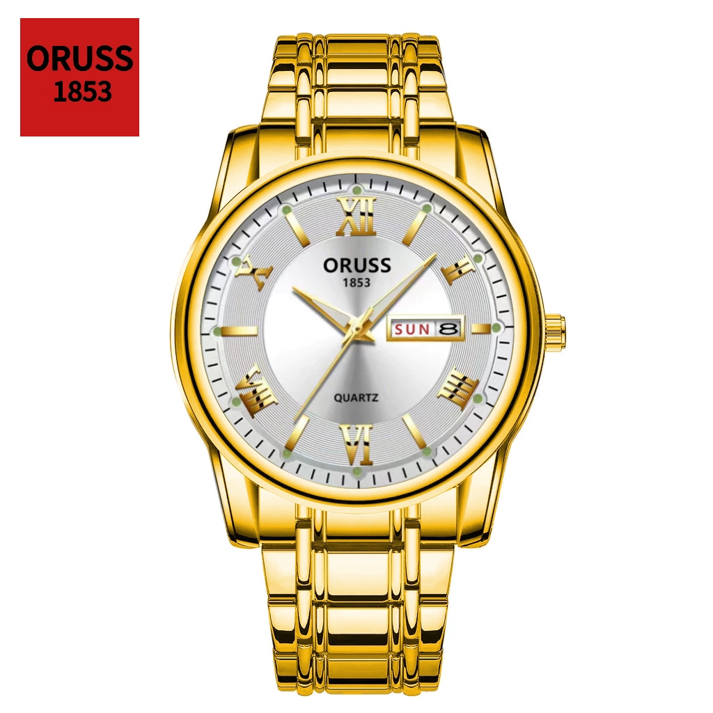 ORUSS Original Masculino Calendário Duplo Aço Inoxidável Luxo À Prova D 'Água Luminosa Moda Relógio Prata Coreano Relógi