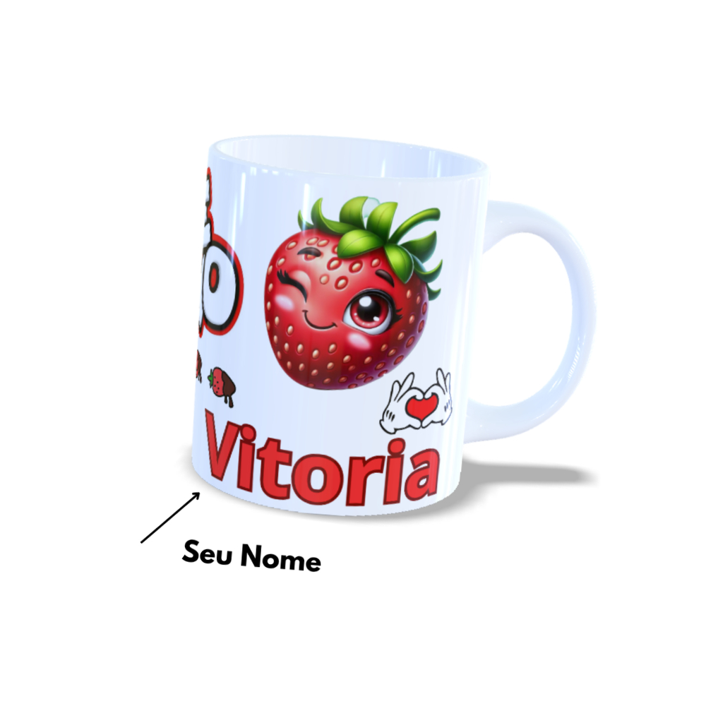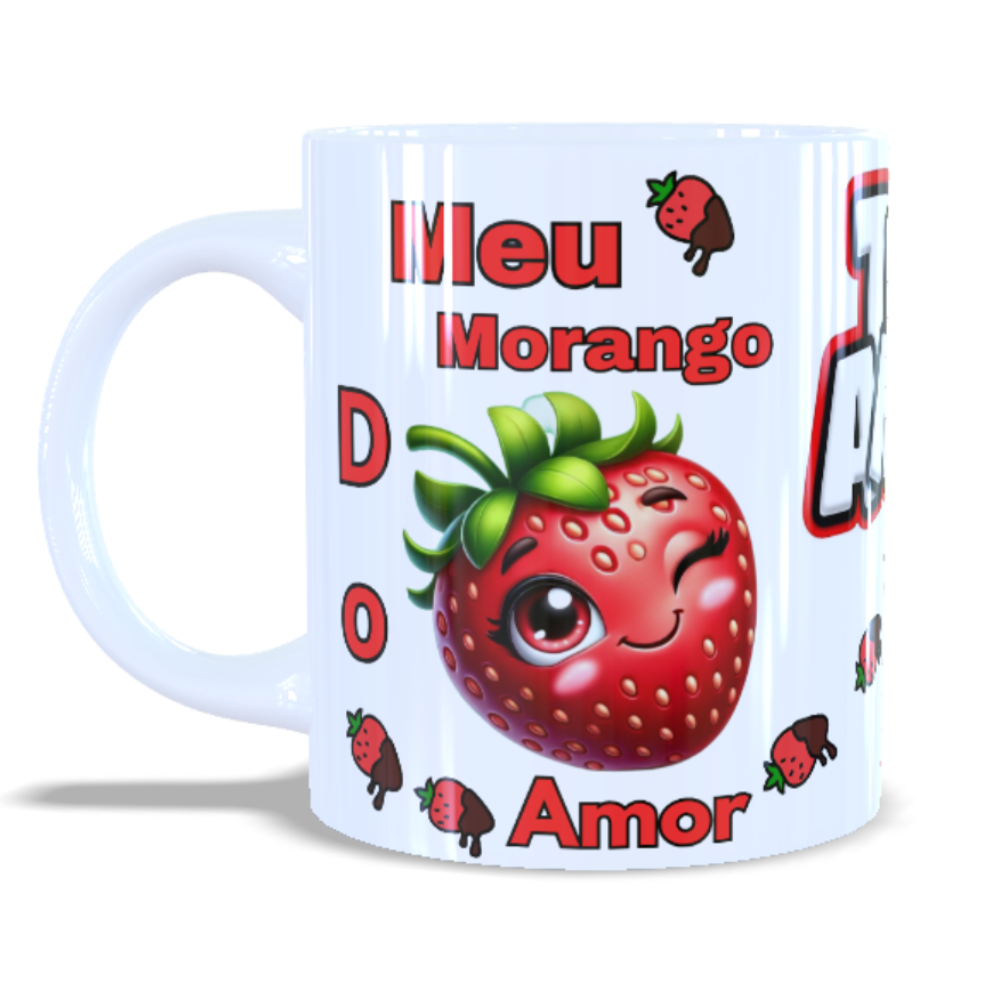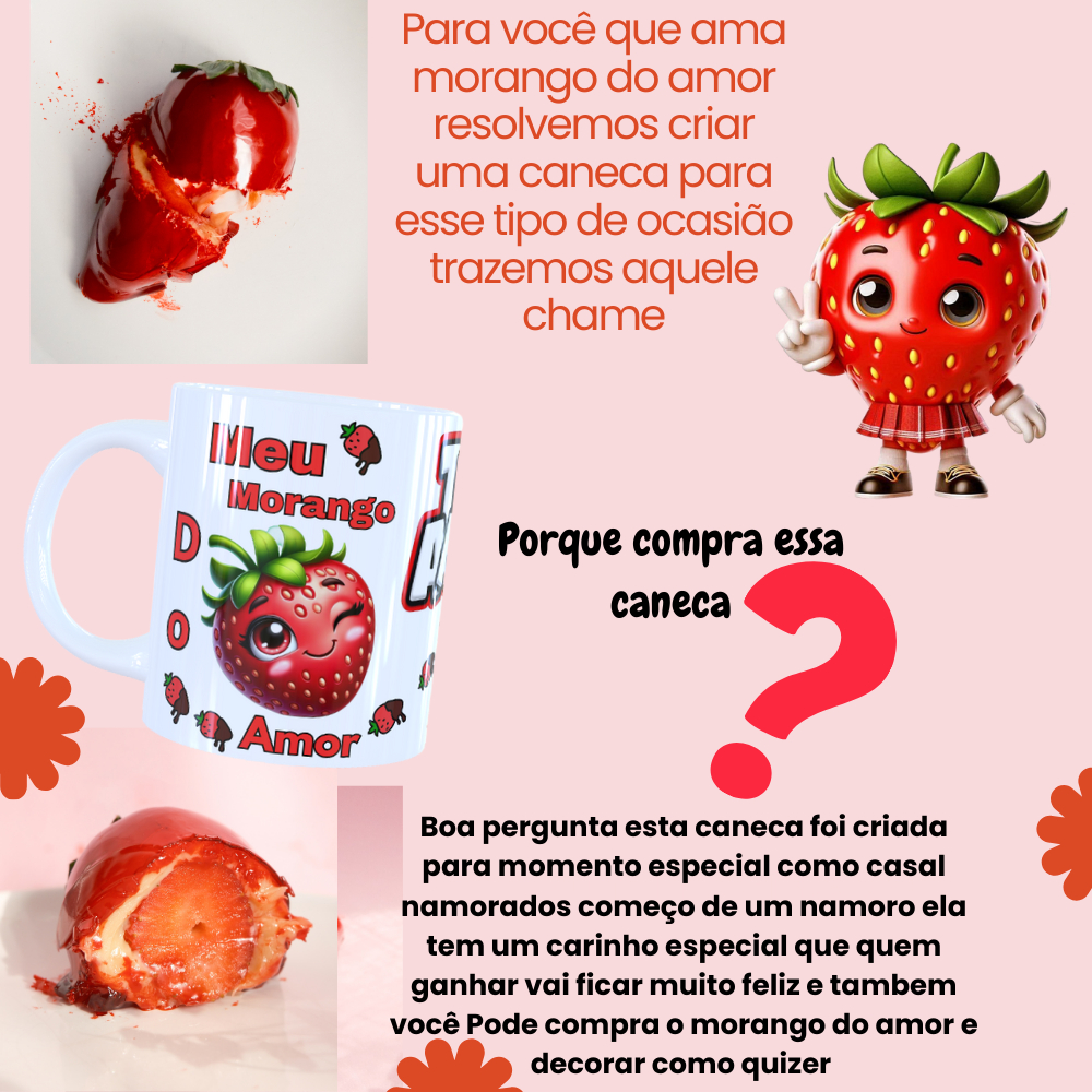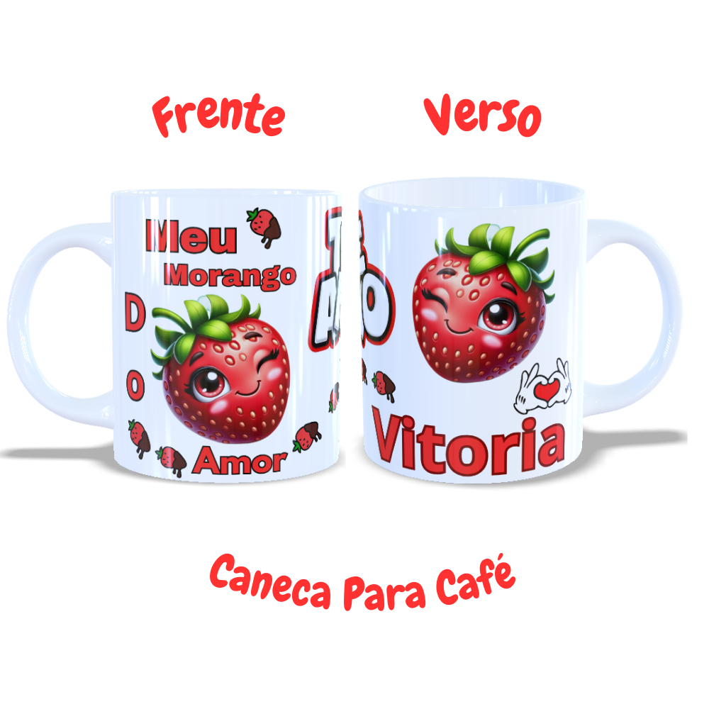 caneca Fofa Do Amor Morango Presente Namorado e Casal