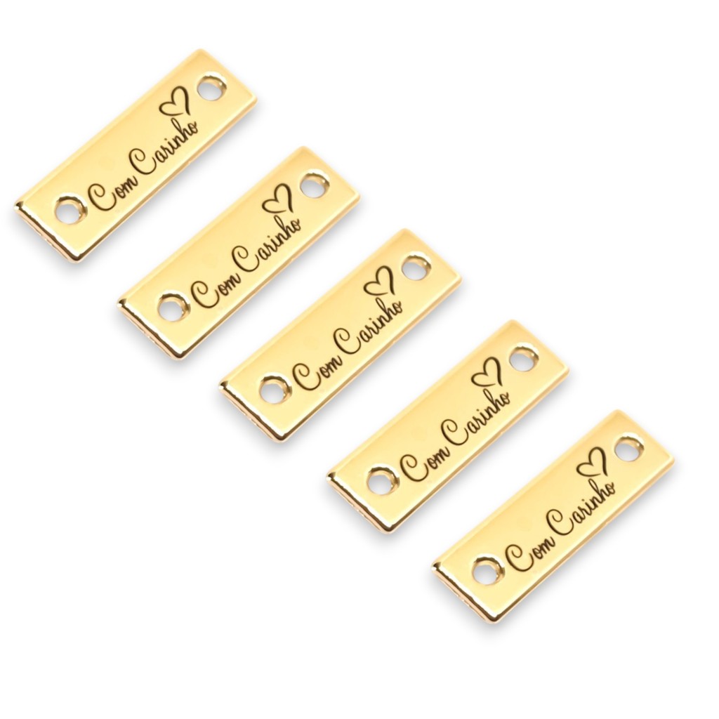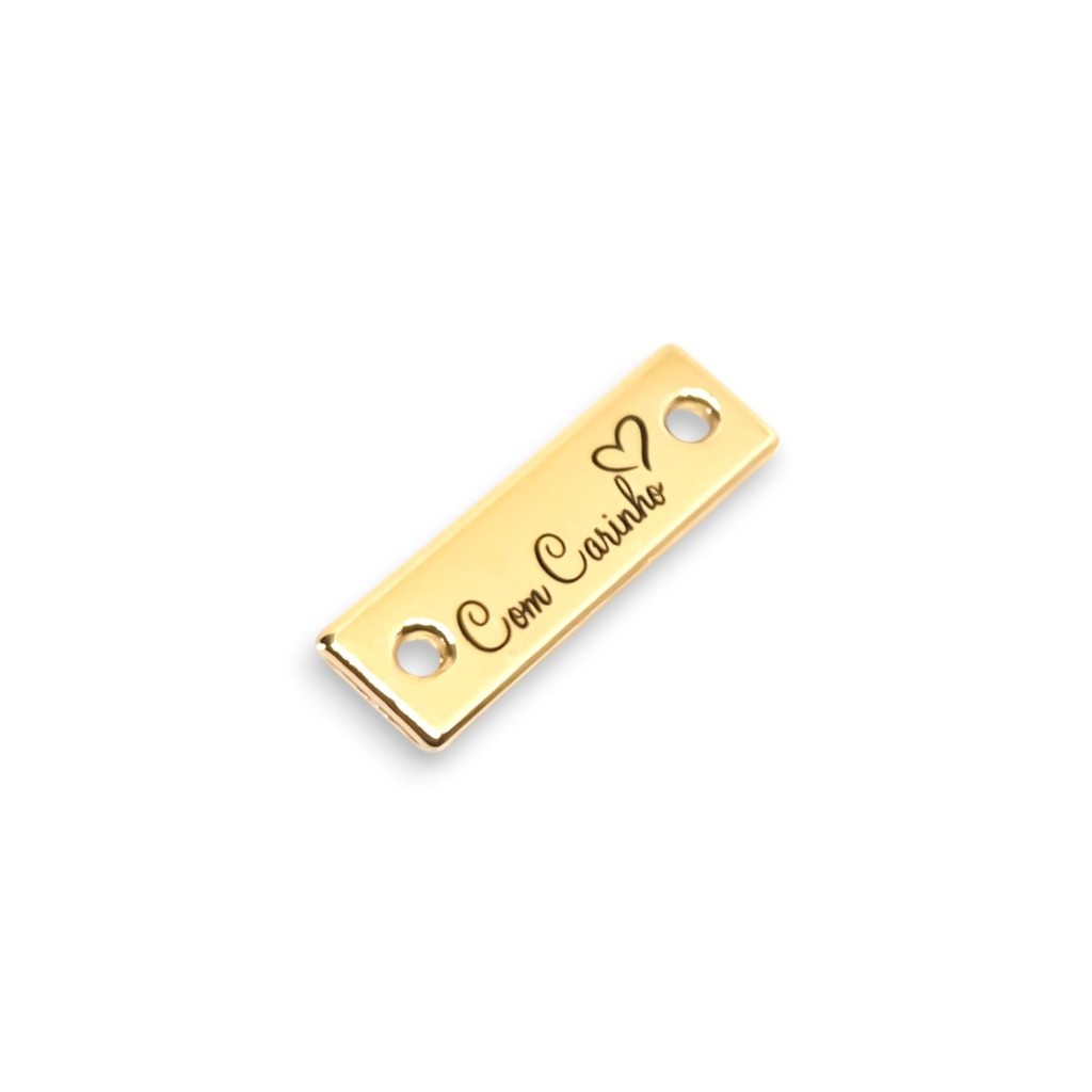 Tag de Metal 2,4x0,8 cm Dourado escrito "COM CARINHO" 10 Un