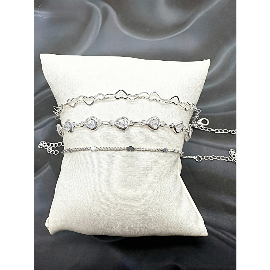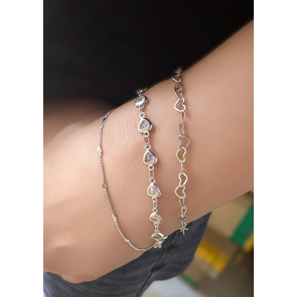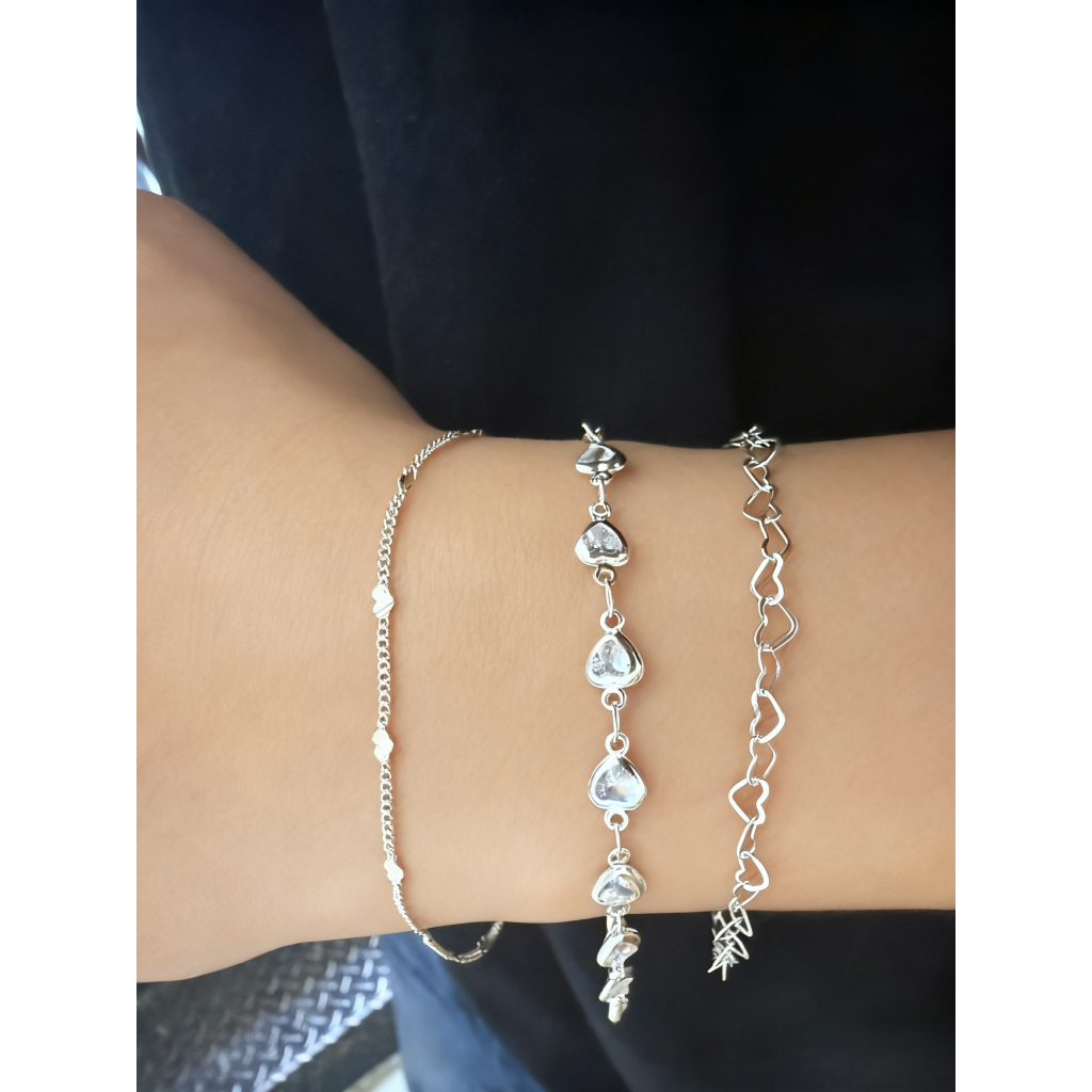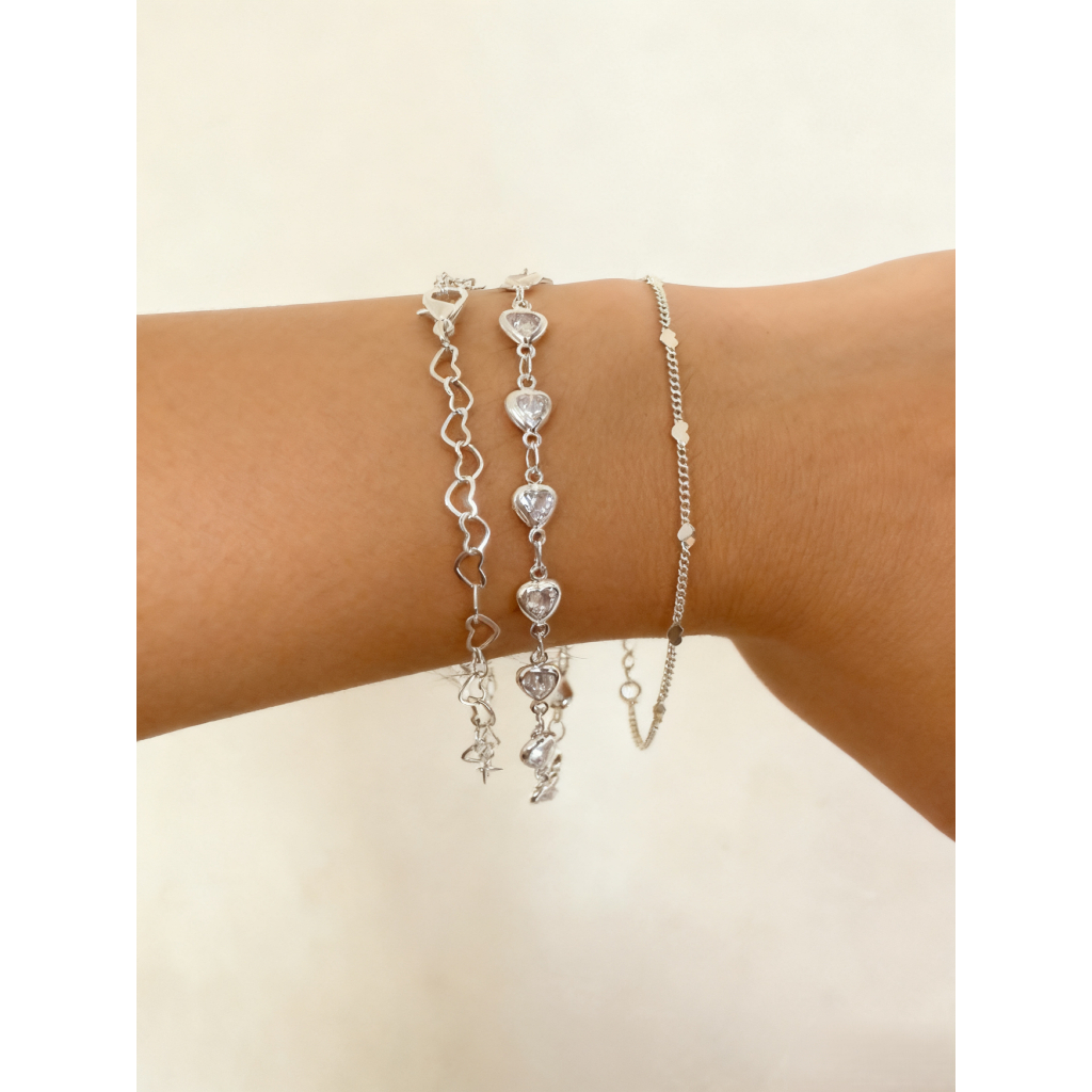Kit 3 Pulseiras Prata 925 Folheada Três tipos de design de coração Amor/carreira/vida Tudo perfeito