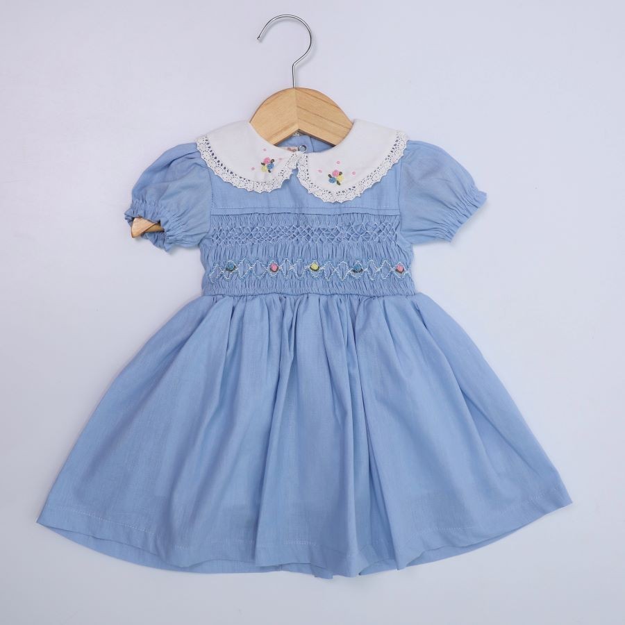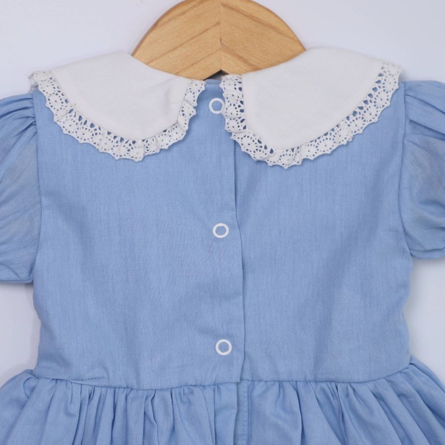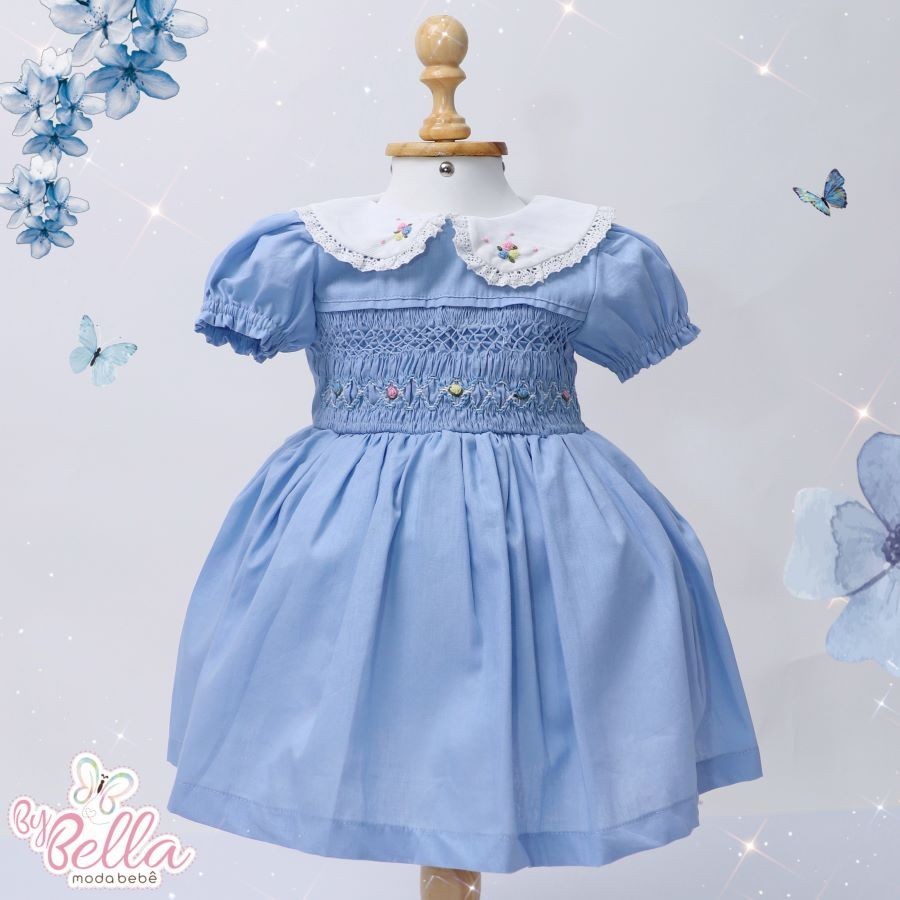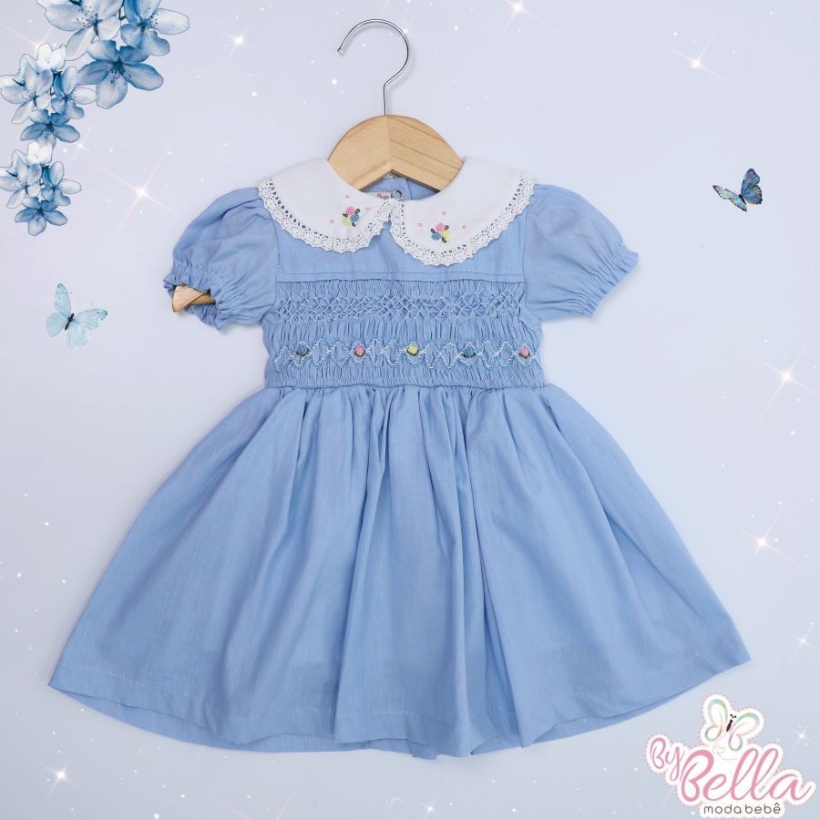 VESTIDO INFANTIL CASINHA DE ABELHA BORDADO BEBÊ MENINA FESTA LIZ AZUL BEBÊ