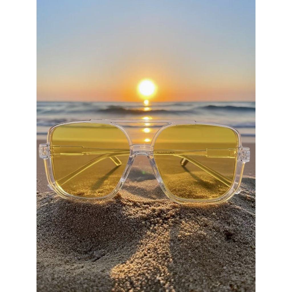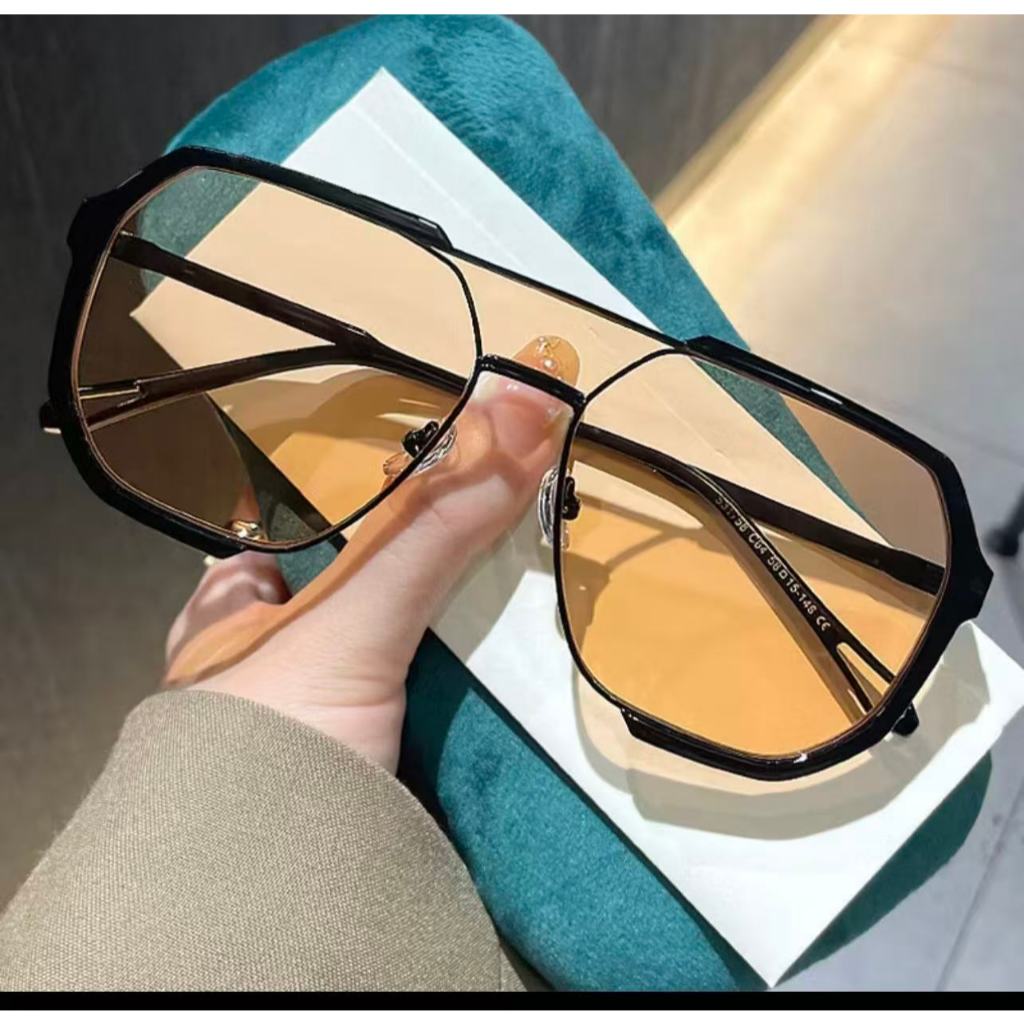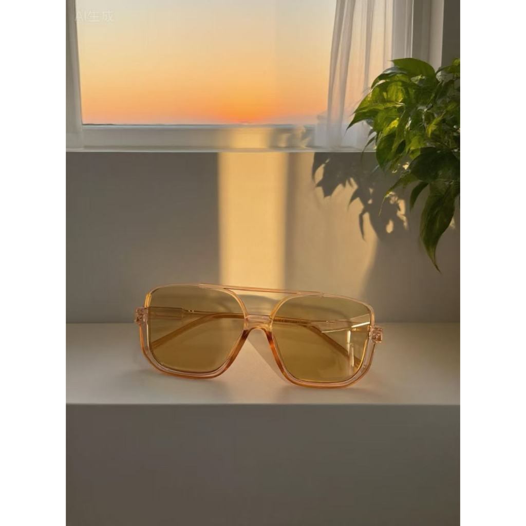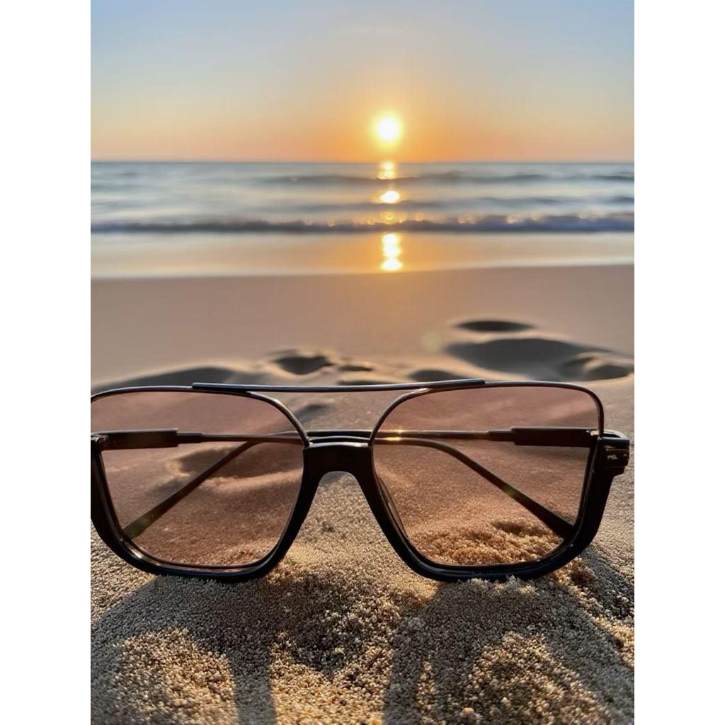 Óculos De Sol quadrada lente champanhe pêssego moda Feminina 2025