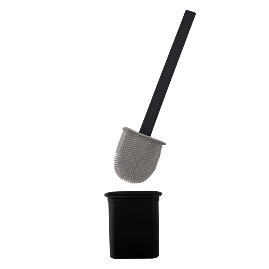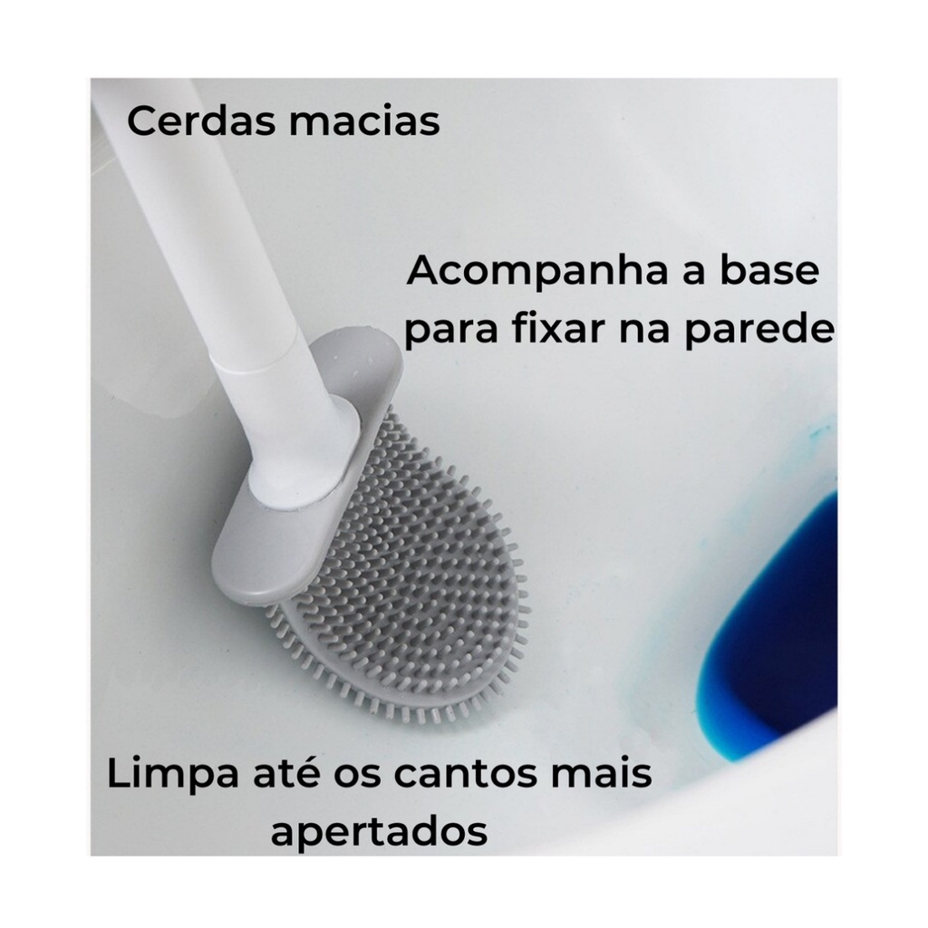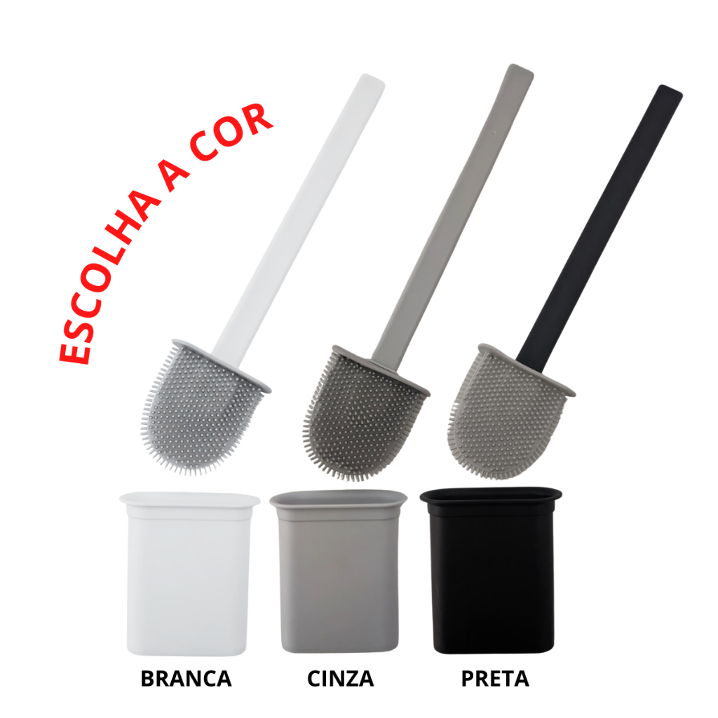Escova Sanitária Silicone Para Limpar Vaso Privada Com Suporte Preto Cinza Branco