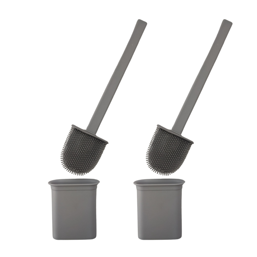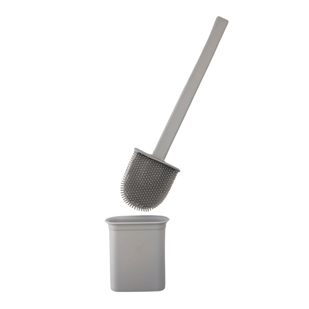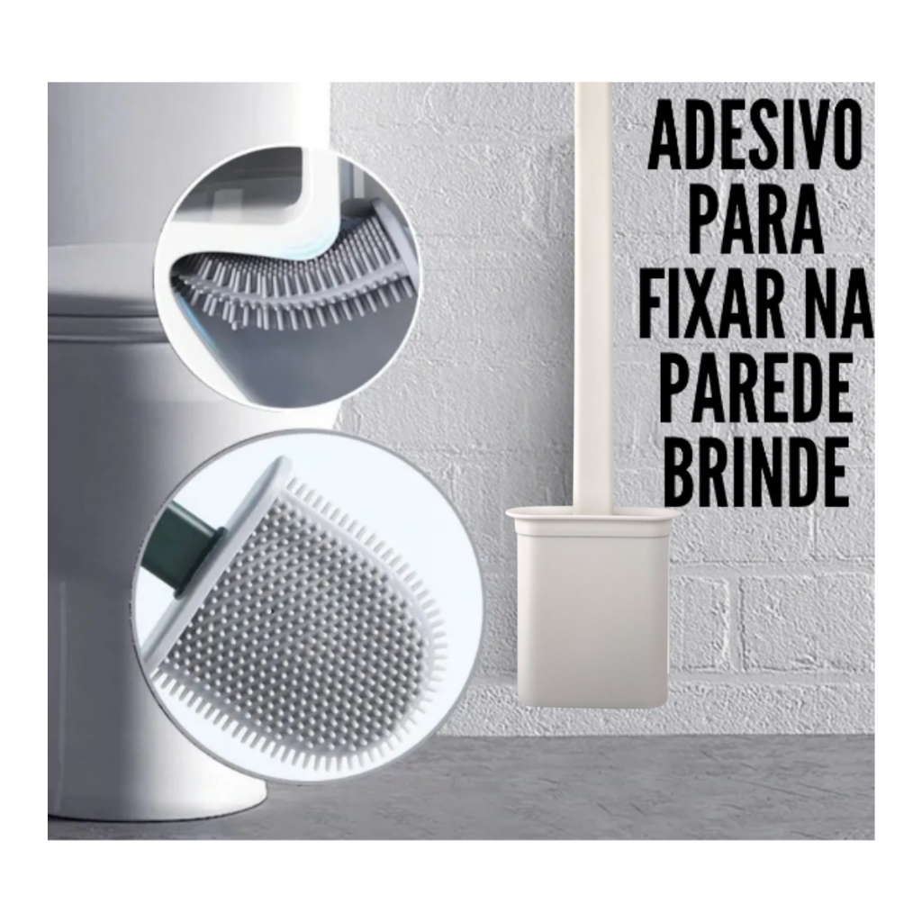Escova Sanitária Silicone Para Limpar Vaso Privada Com Suporte Preto Cinza Branco
