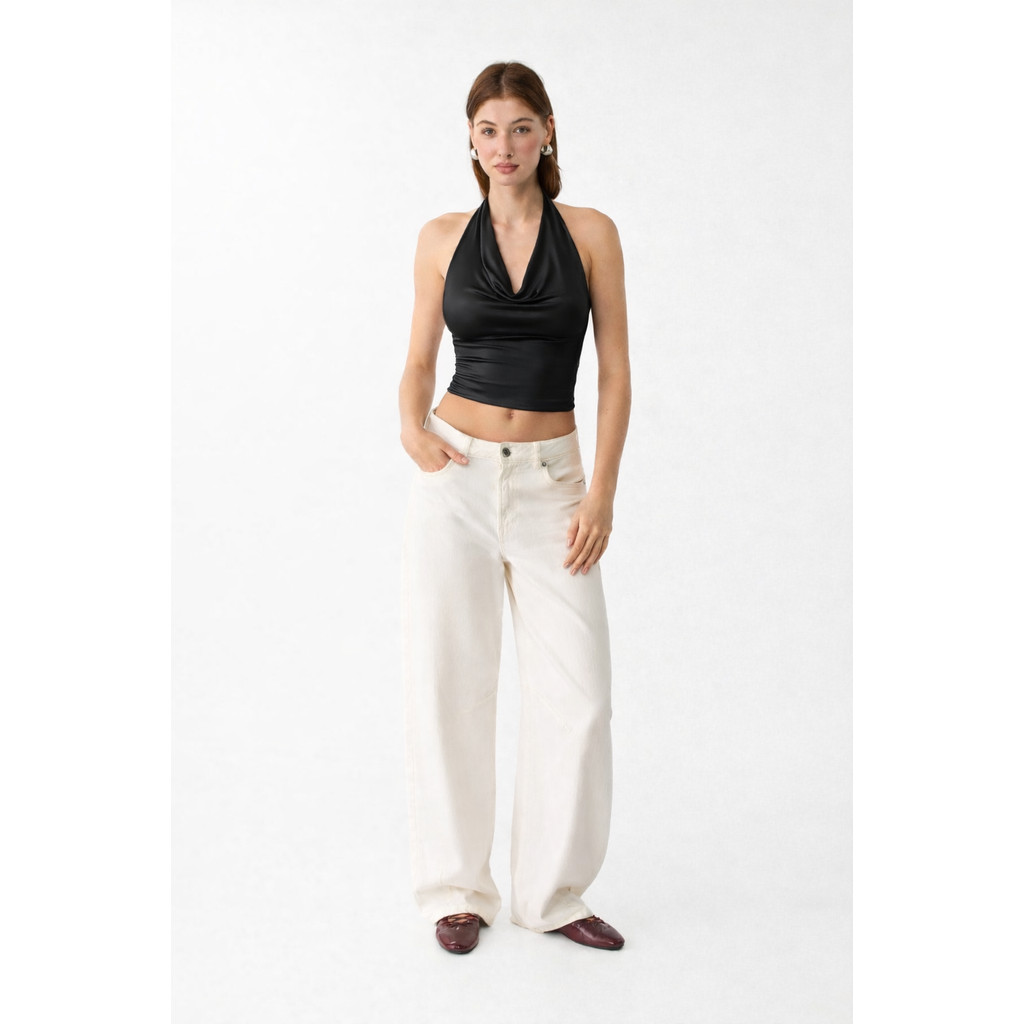 Blusinha moda cropeed top gola boba blusa Fminina