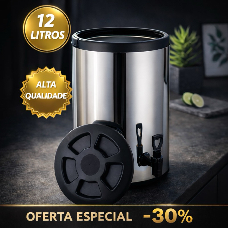 Botijão Garrafa Térmica Inox com Torneira 6L 8L 12L – Bebidas Quentes e Frias | Alta Durabilidade
