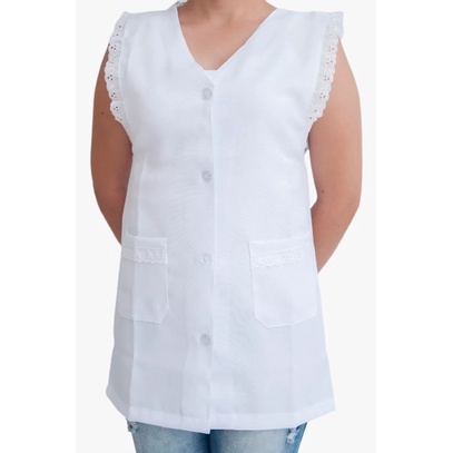 Jaleco Feminino Acinturado Sem Manga Com Renda Lese