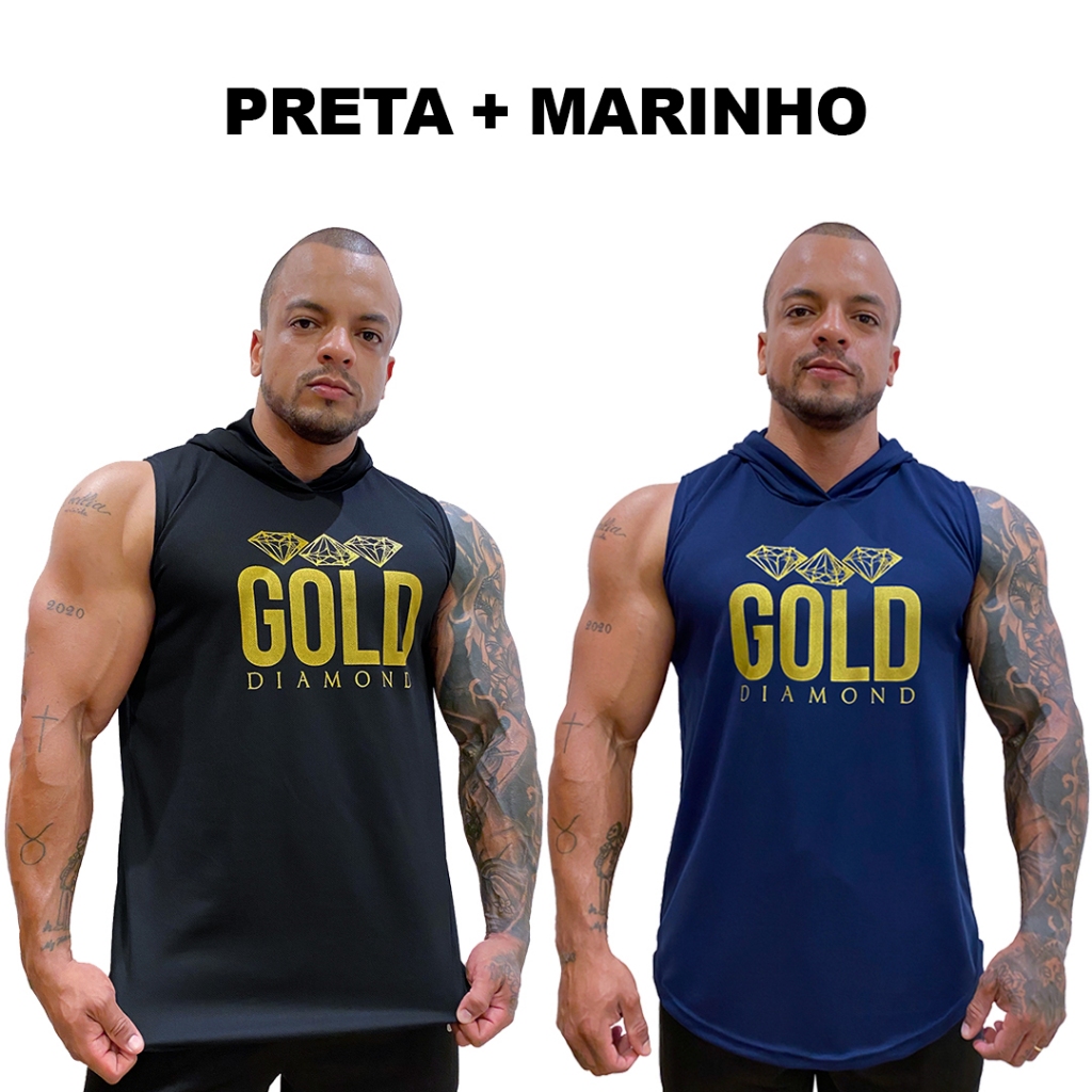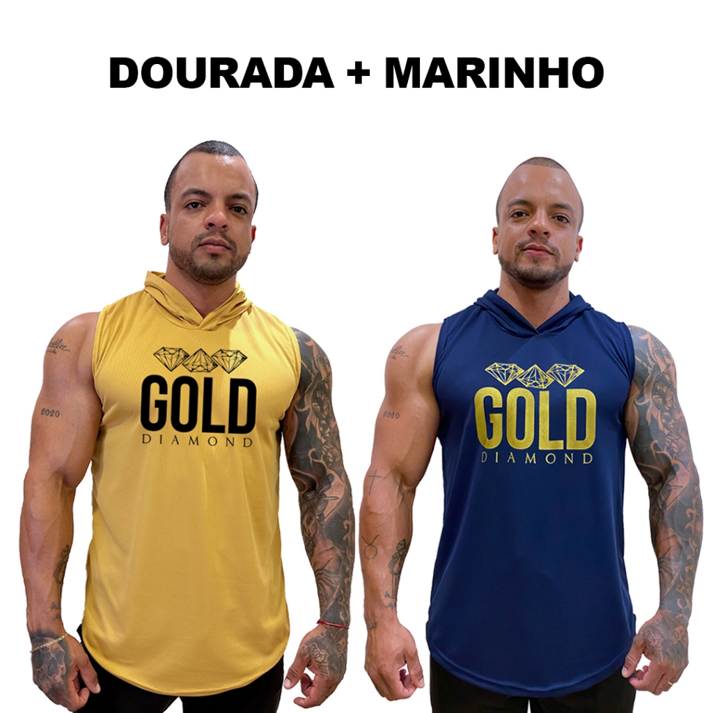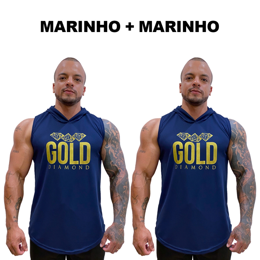 Kit com 2 Regatas Masculina Longline em Dry com Capuz Estampa Gold Diamond - Bombey