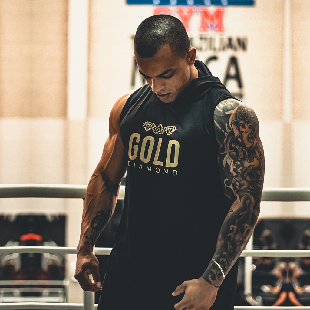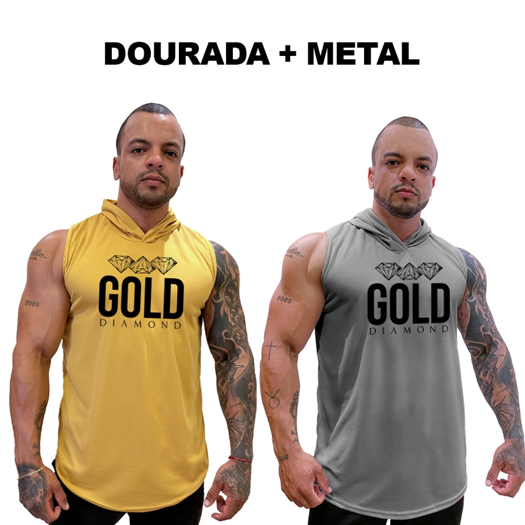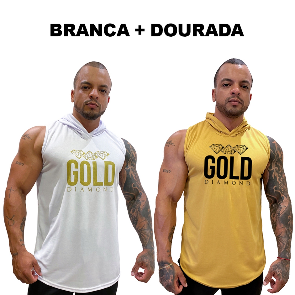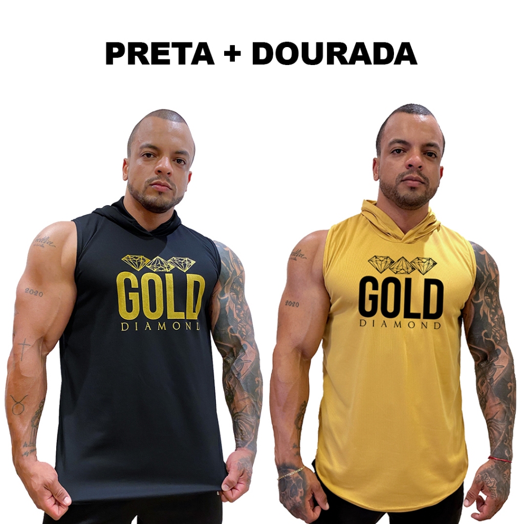 Kit com 2 Regatas Masculina Longline em Dry com Capuz Estampa Gold Diamond - Bombey