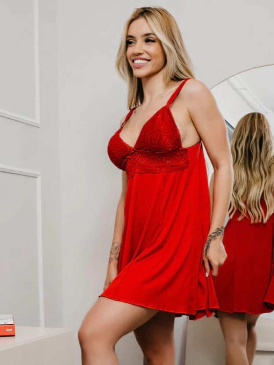Camisola Renda Sem Bojo Lingerie Linha Noite Pijama Dormir Vestido Verão Moda Intima
