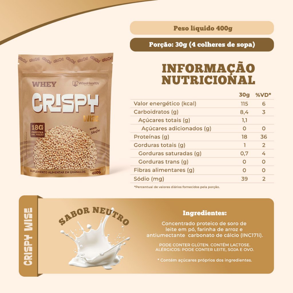 CRISPY WISE (400g) - Crispie proteico à base de Whey Protein 18g de Proteína Porção Sabor Neutro