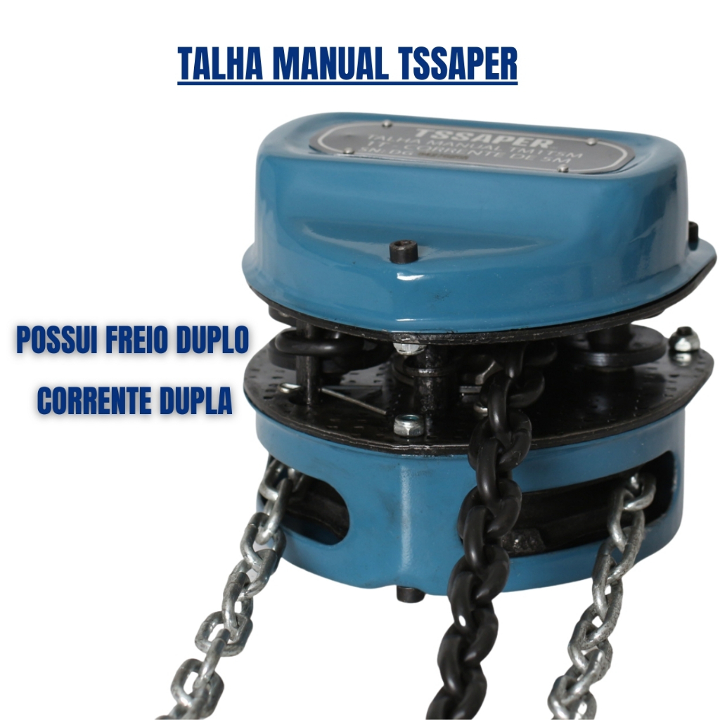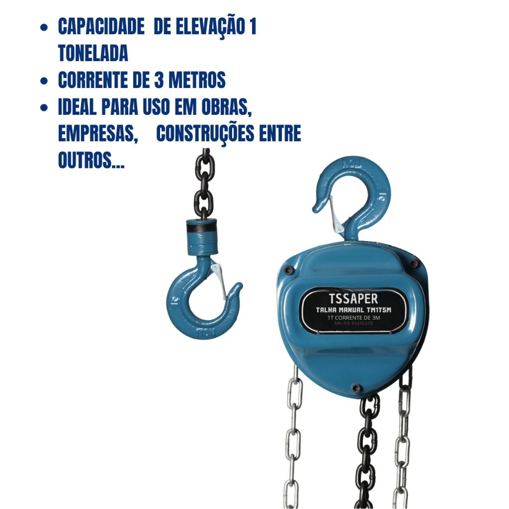 Talha Guincho Manual 1 Tonelada 1000kg Com Corrente 3 Metros Com Freio Duplo Tssaper